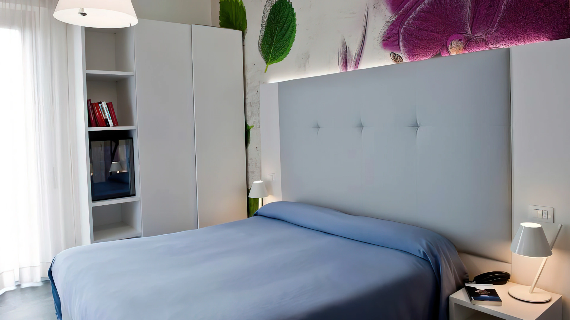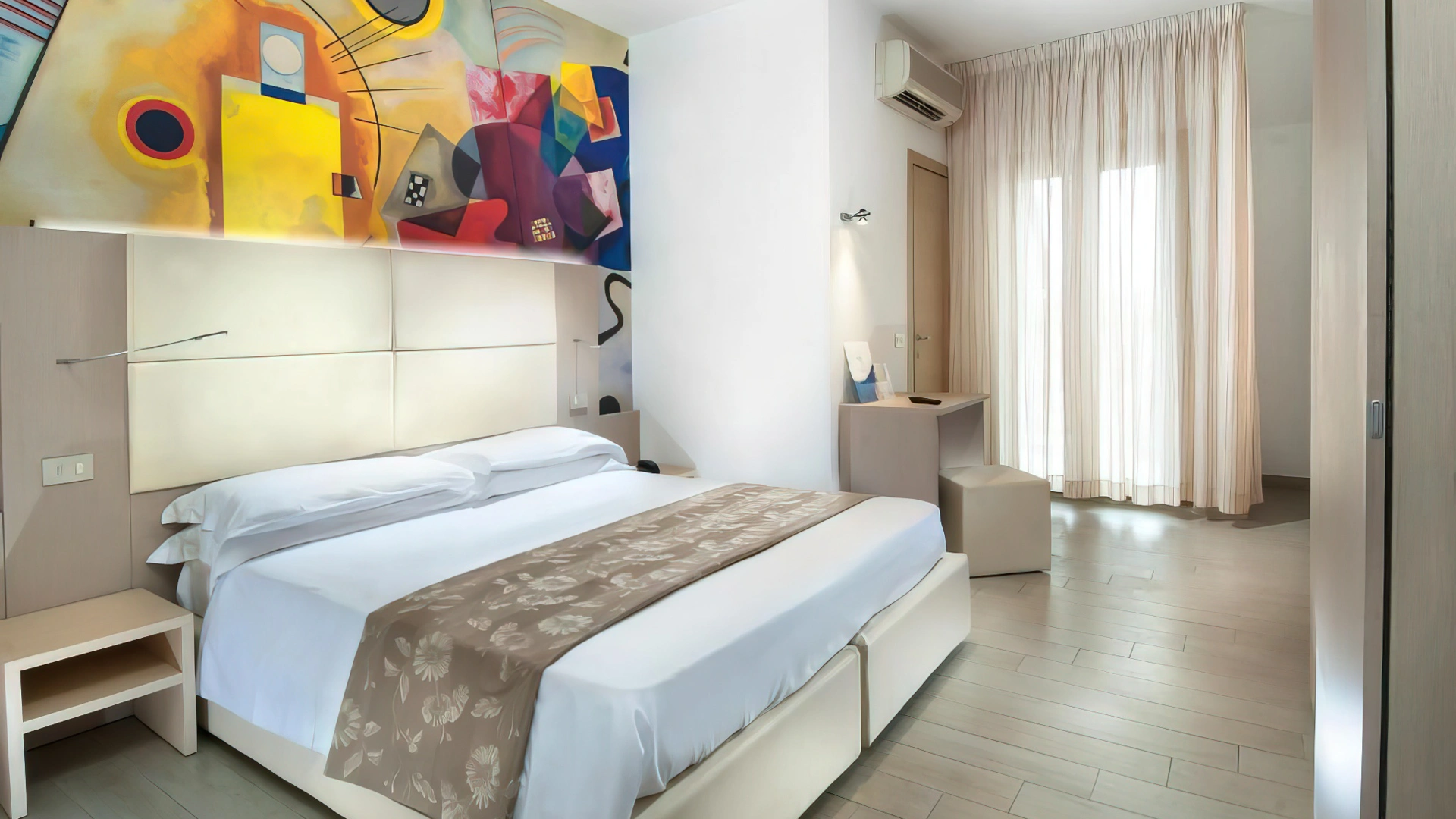 Le camere, in stile semplice e moderno, dispongono di cassaforte, aria condizionata, connessione Wi-Fi, TV con canali Sky e bagno privato con doccia. Le stanze di tipologia Superior offrono in aggiunta minifrigo e balcone, anche vista mare.