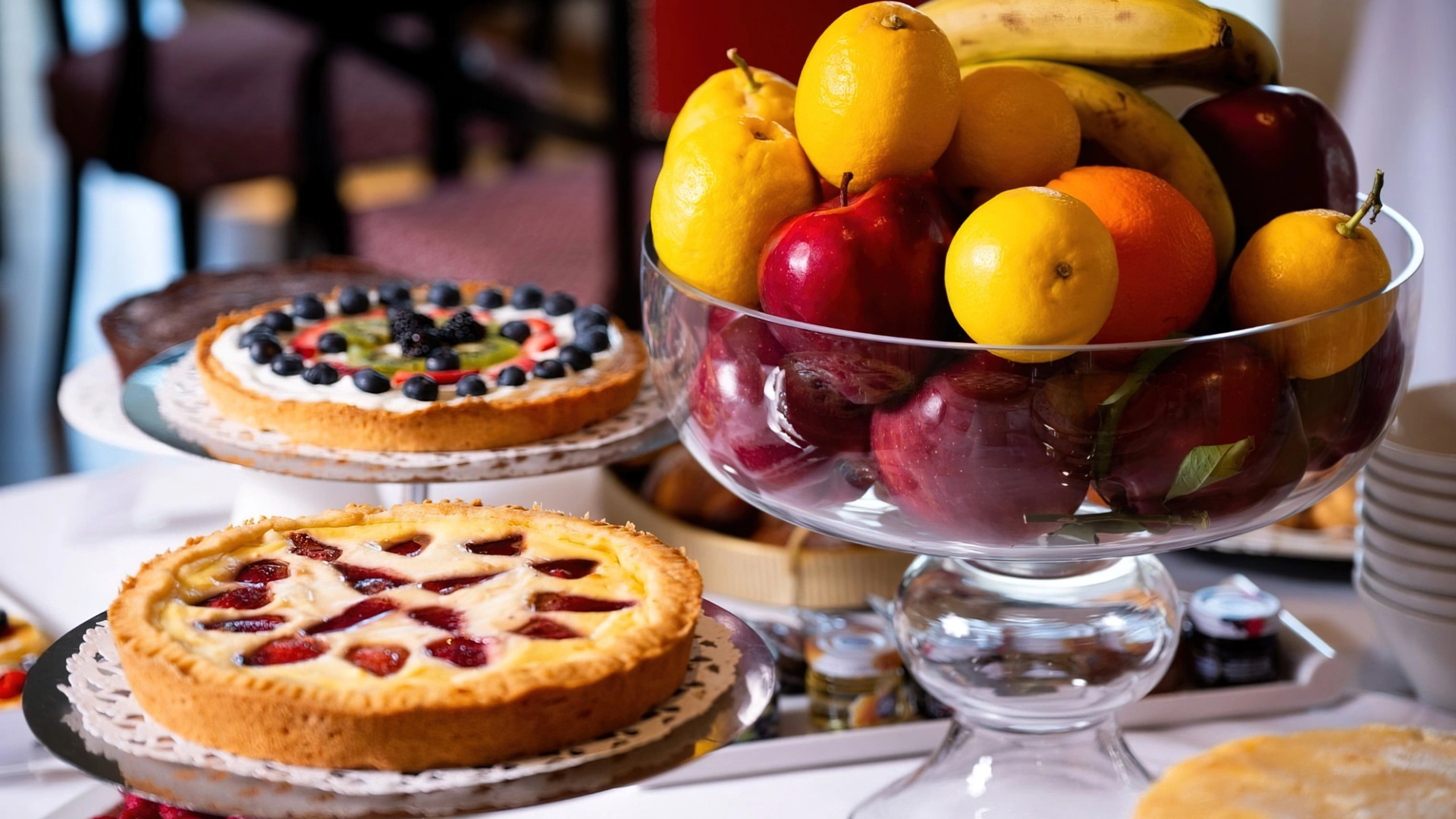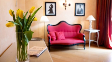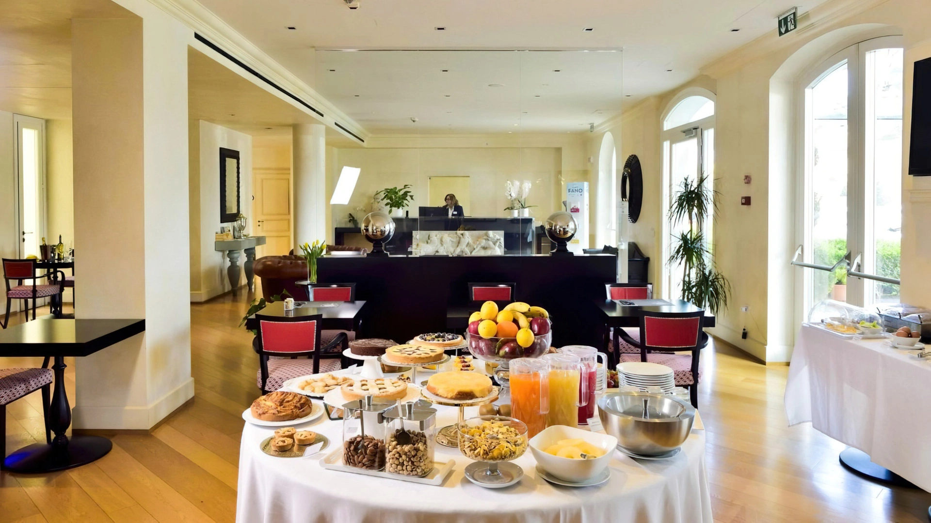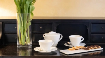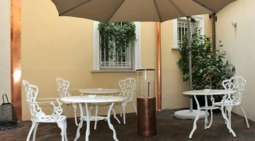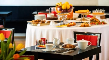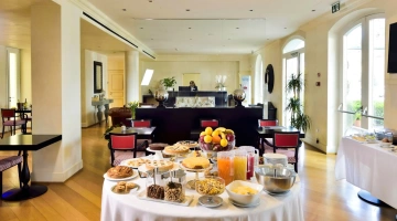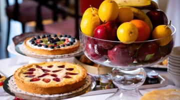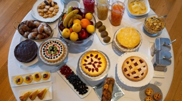 La colazione continentale e a buffet propone una selezione di dolci fatti in casa e una varietà di cibi salati, anche adatti a coloro che seguono diete particolari. Viene servita al mattino nella luminosa sala a vetri oppure in camera.