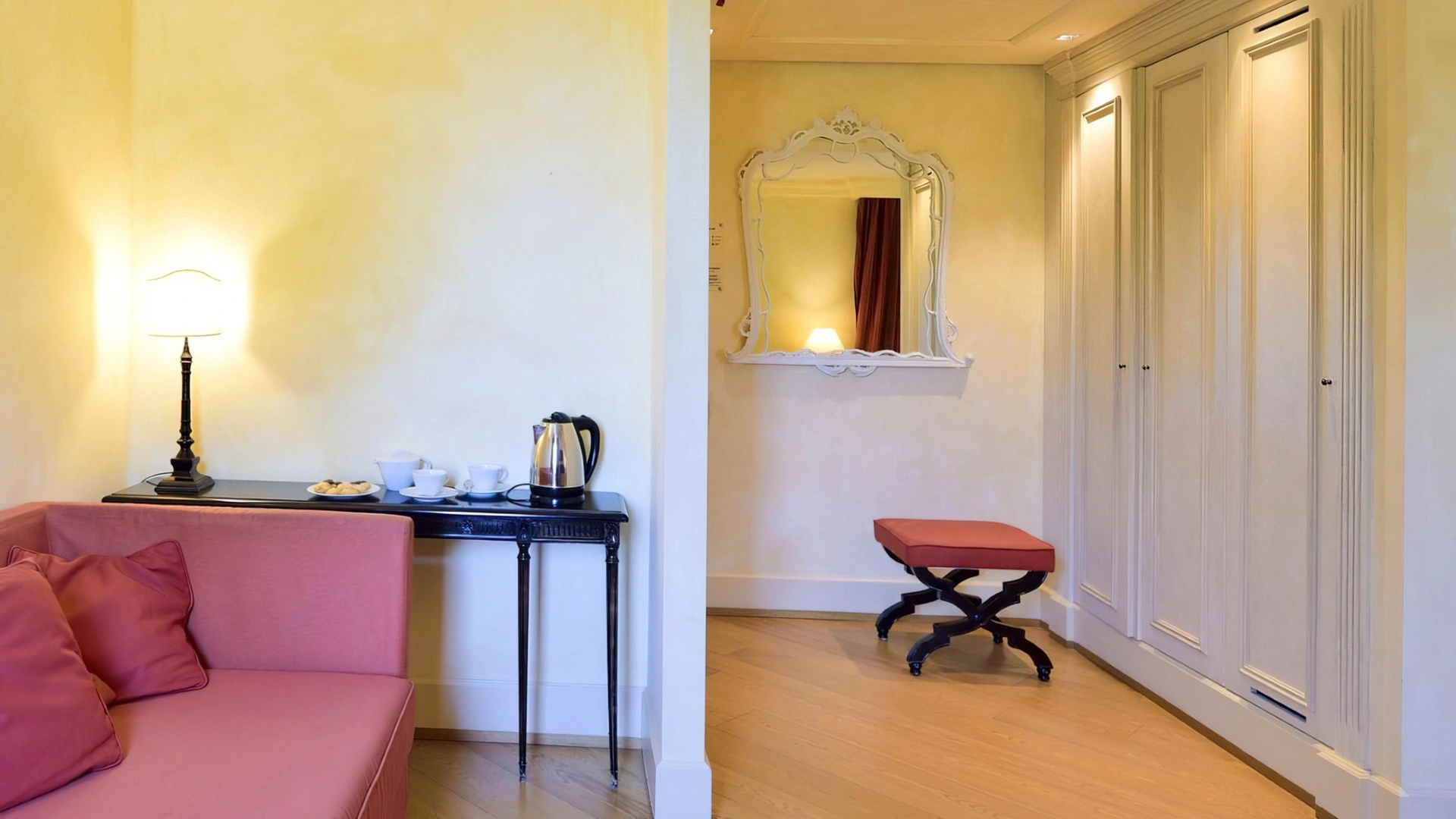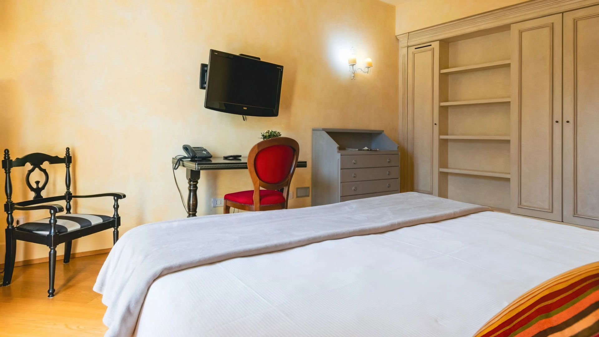 Le 20 camere sono caratterizzate da arredi ricercati e sono dotate di TV a schermo piatto con SKY, Wi-Fi gratuito, frigobar, climatizzazione, cassaforte, servizi privati con doccia o vasca, phon e set cortesia. Distinte in tre tipologie diverse offrono spazi di diversa metratura nonchè la vista sulle antiche mura augustee o sulla vecchia darsena. Alcune camere sono dotate di salottino.