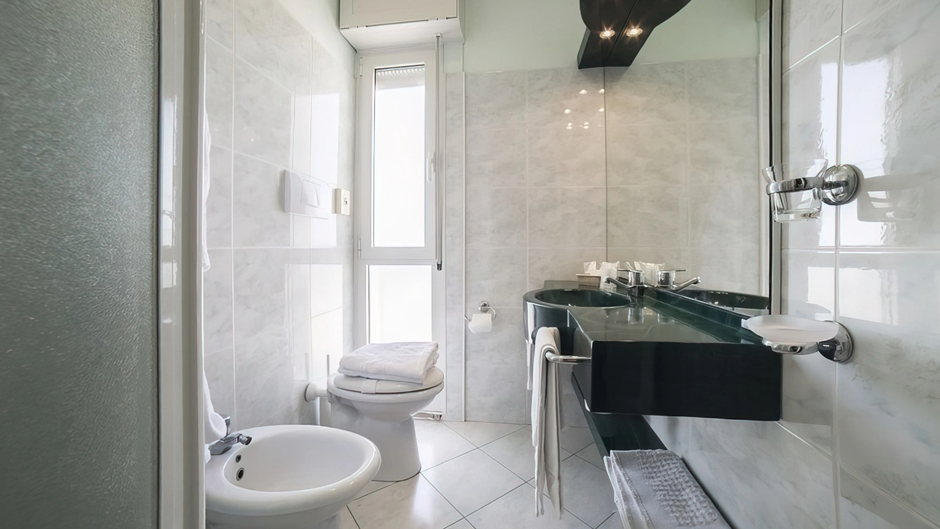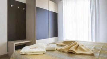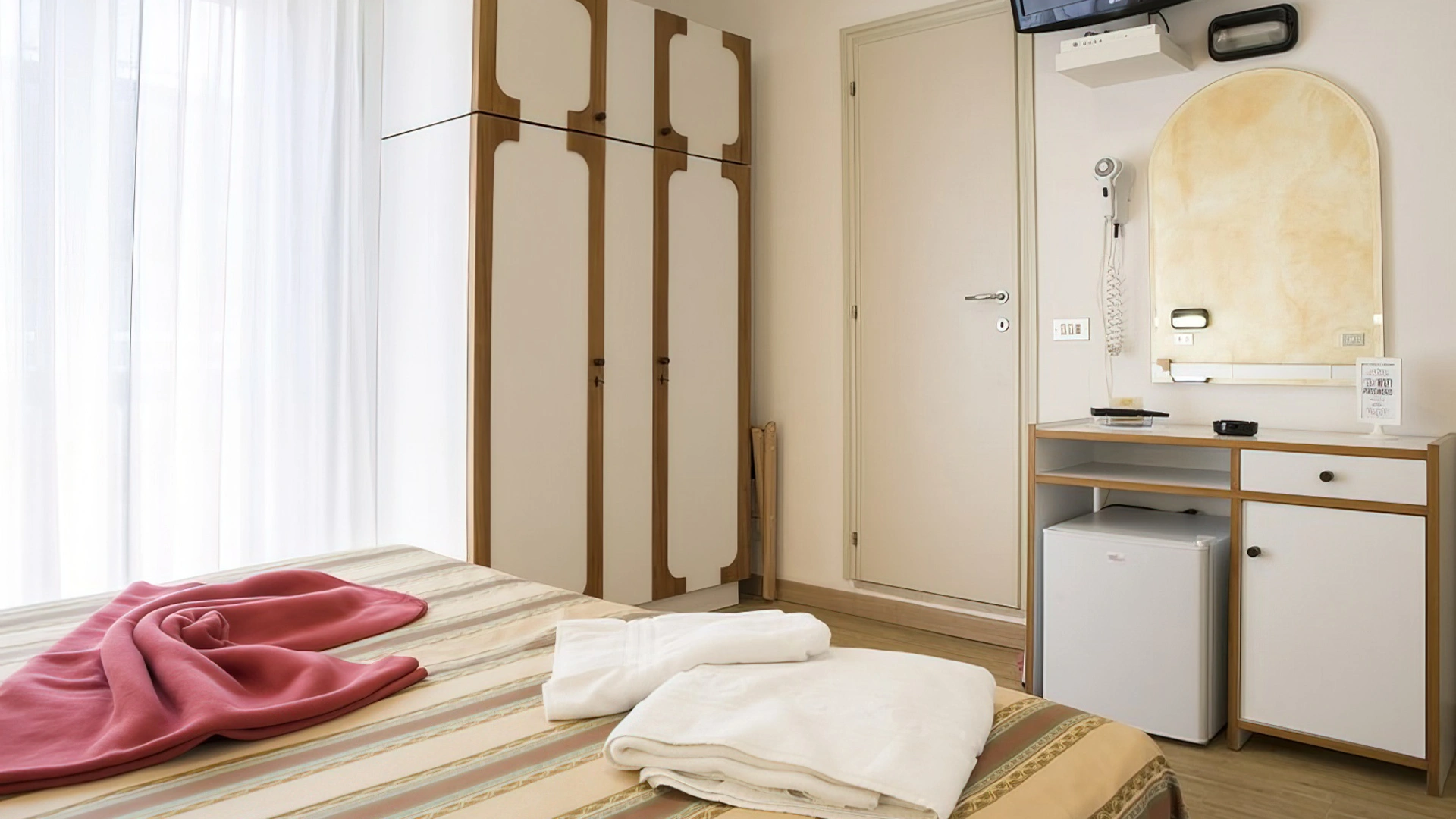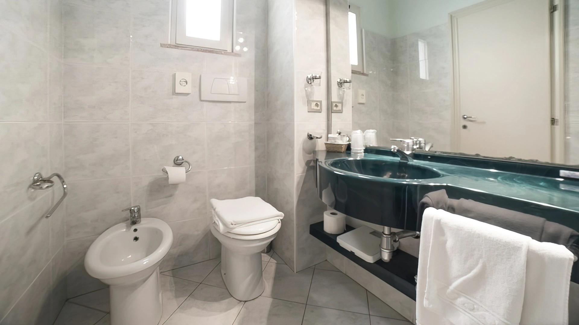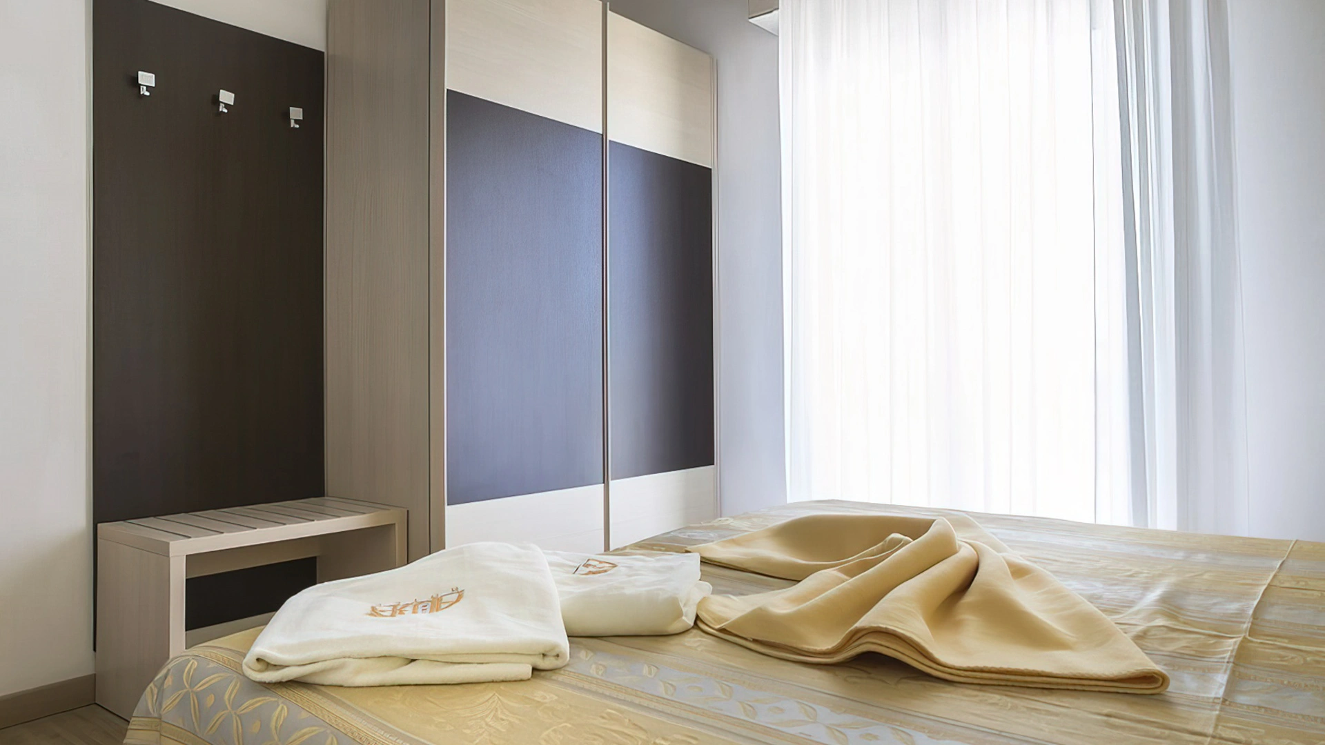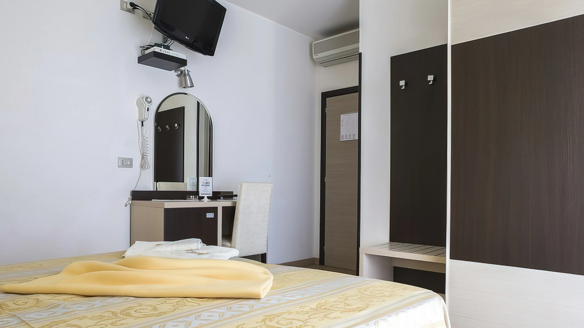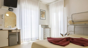 Le stanze dispongono aria condizionata, Wi-Fi in fibra, TV Sat, cassaforte, telefono, frigobar, bagno con box doccia e phon. Alcune sono dotate di balcone con vista sul mare, Su richiesta: room service a pagamento.