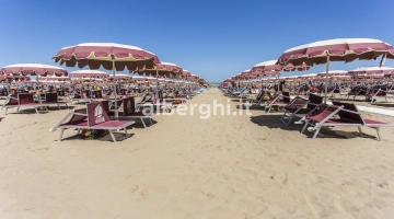 La struttura è convenzionata con la spiaggia Banana Beach n. 10-12, dotata di bar, ristorante, cabine, piscina, idromassaggio, animazione per bambini.