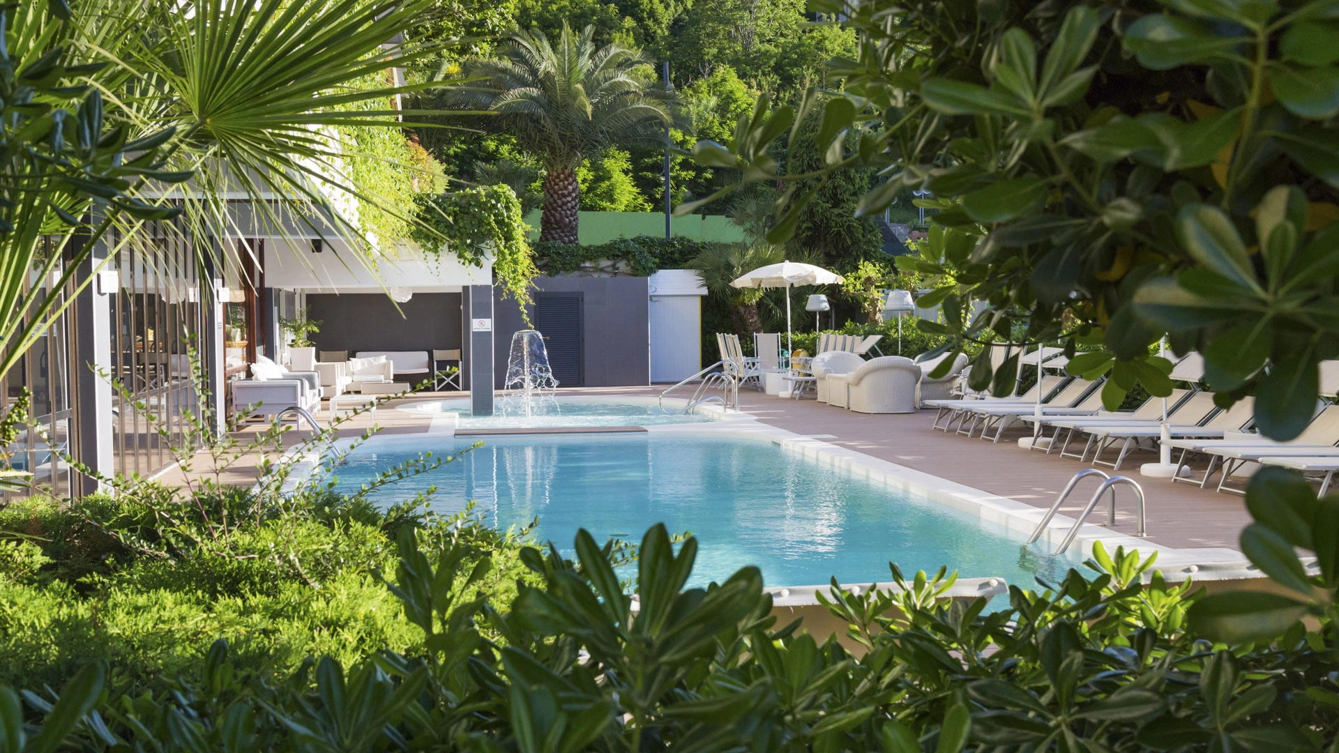 La piscina esterna è composta da una vasca di 98 mq, una vasca dedicata ai bambini di 12 mq e una vasca idromassaggio riscaldata a 12 posti, ampia 9 mq e dotata di cascata per massaggio cervicale. Intorno alle vasche si sviluppa un'area solarium dotata di ombrelloni e lettini.