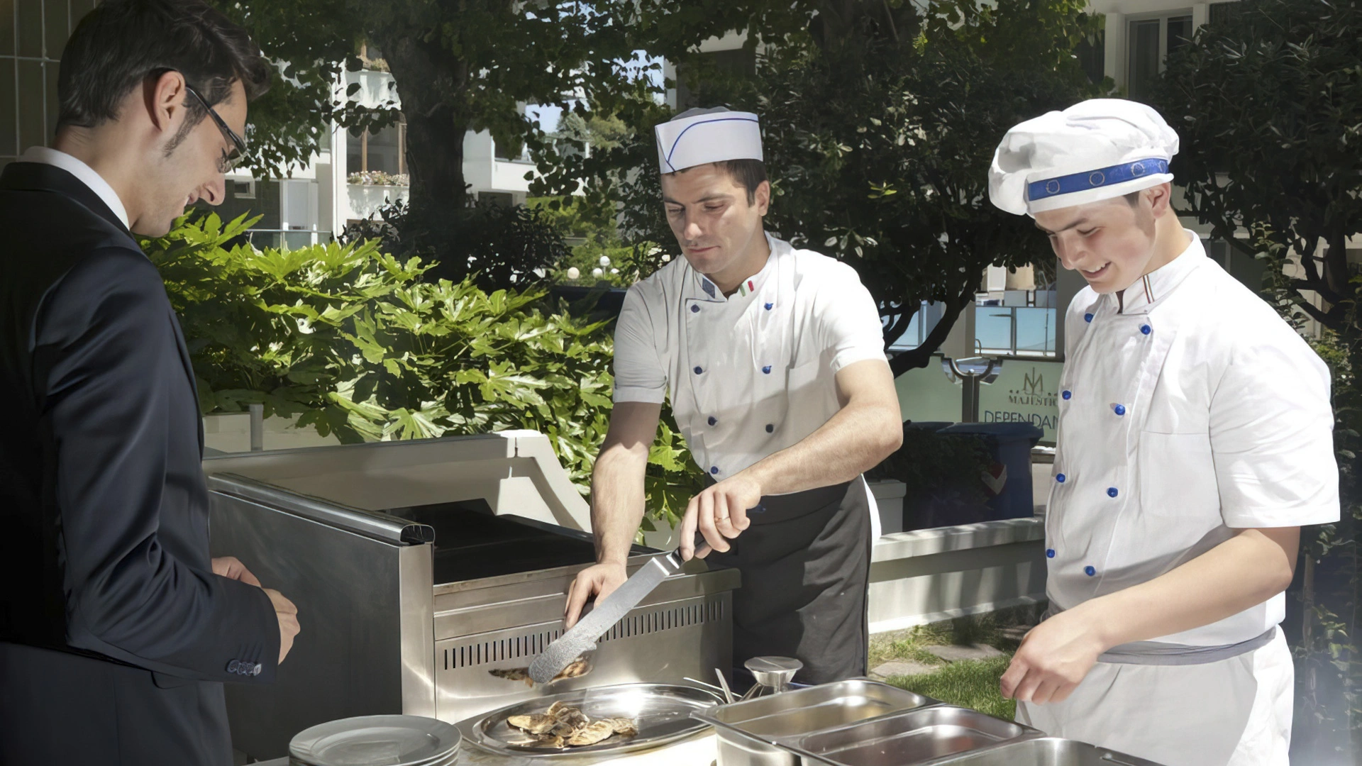 CENA: buffet con selezione di antipasti, tre primi e tre secondi a scelta (carne, pesce e vegetariano), accompagnati da una ricca carta di vini selezionati. La proposta si completa con pasticceria fatta in casa, dolci al cucchiaio, torte di frutta o sorbetti.