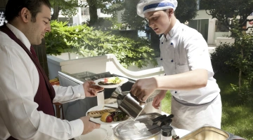 COLAZIONE: a buffet, da gustare in giardino o a bordo piscina, con un’ampia selezione di torte fatte in casa, dolci, pancake, brioche e diverse tipologie di pane. Completano l’offerta salumi, formaggi e uova, insieme a un angolo dedicato ai prodotti biologici e alle proposte gluten free. Le bevande calde sono servite al tavolo con servizio espresso.