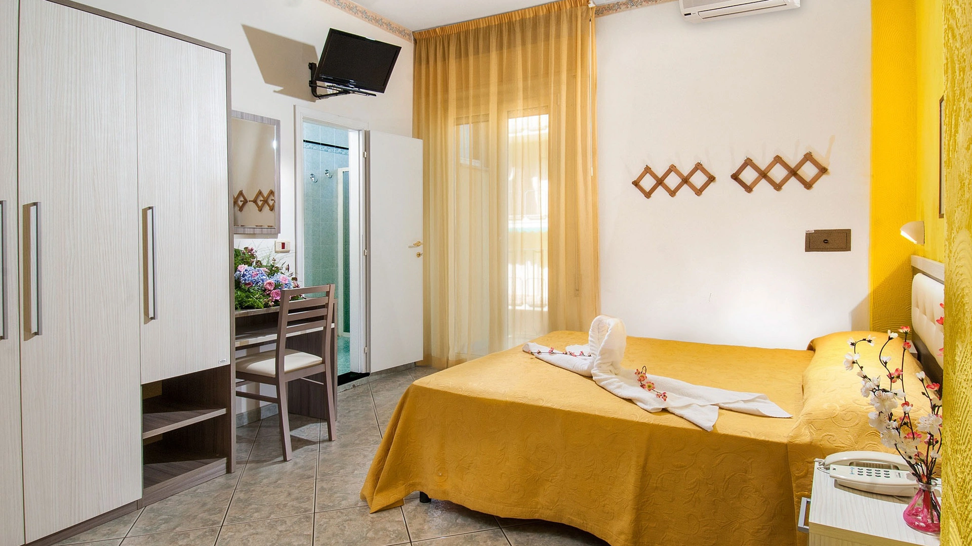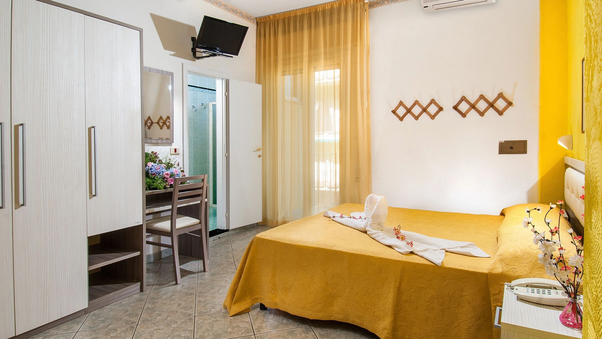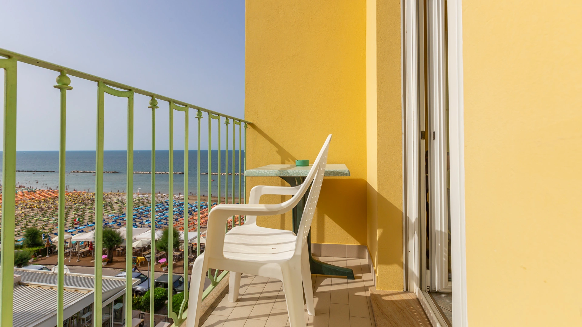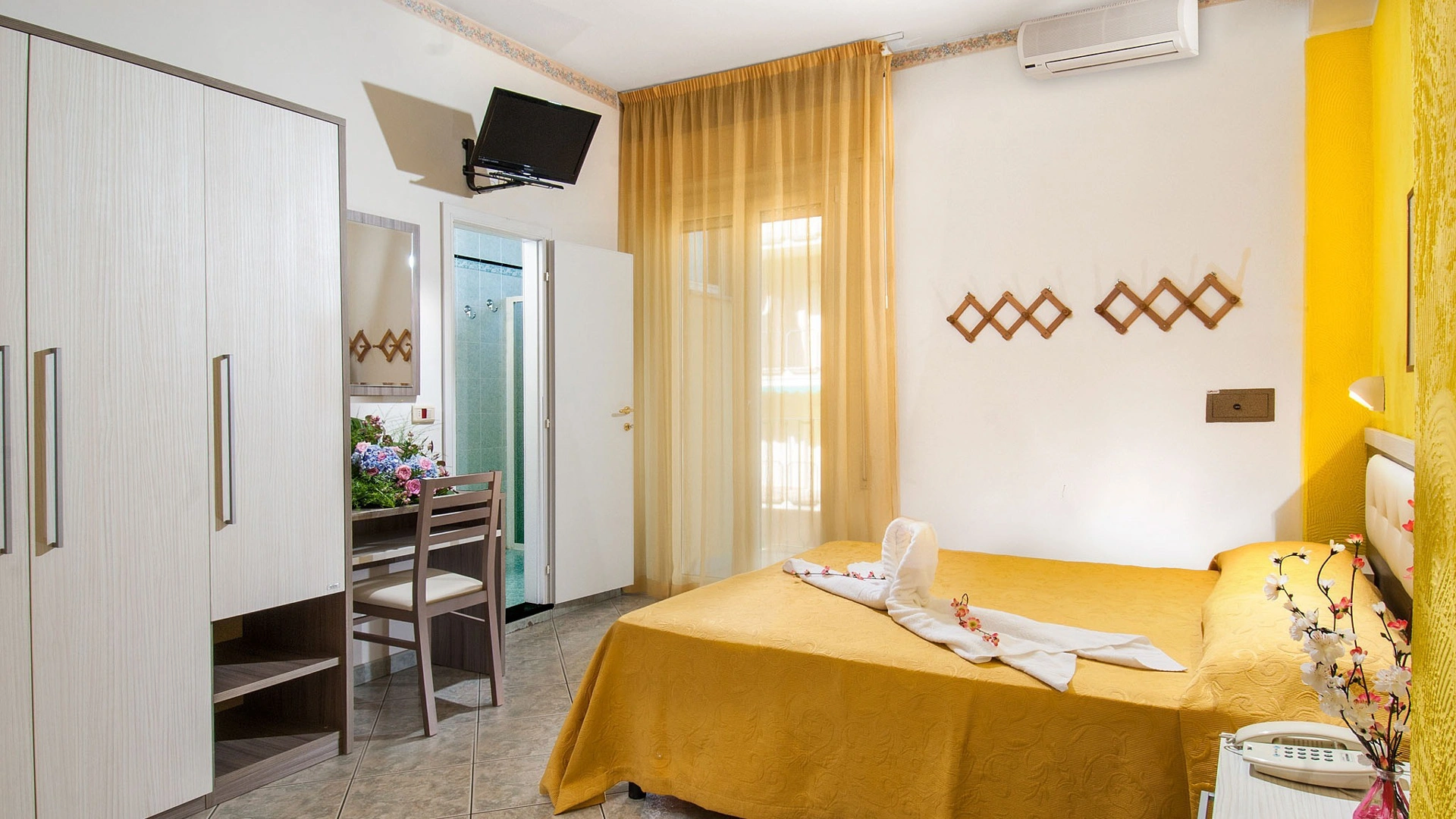Le camere hanno balcone vista mare (frontale o laterale), aria condizionata, Wi-Fi fibra 100 Mbit/s, cassaforte, telefono, bagno con phon e box doccia, TV digitale terrestre e satellitare; frigobar non fornito disponibile su richiesta, a pagamento. La pulizia avviene a cadenza giornaliera.