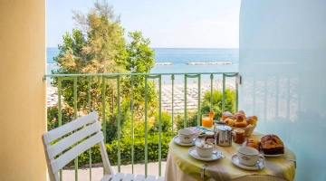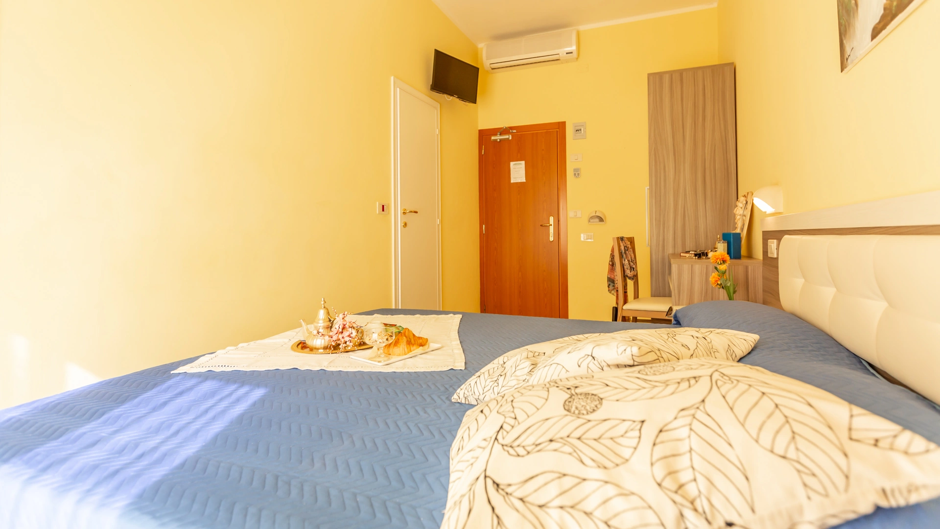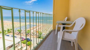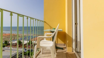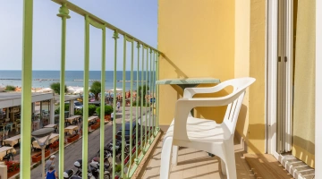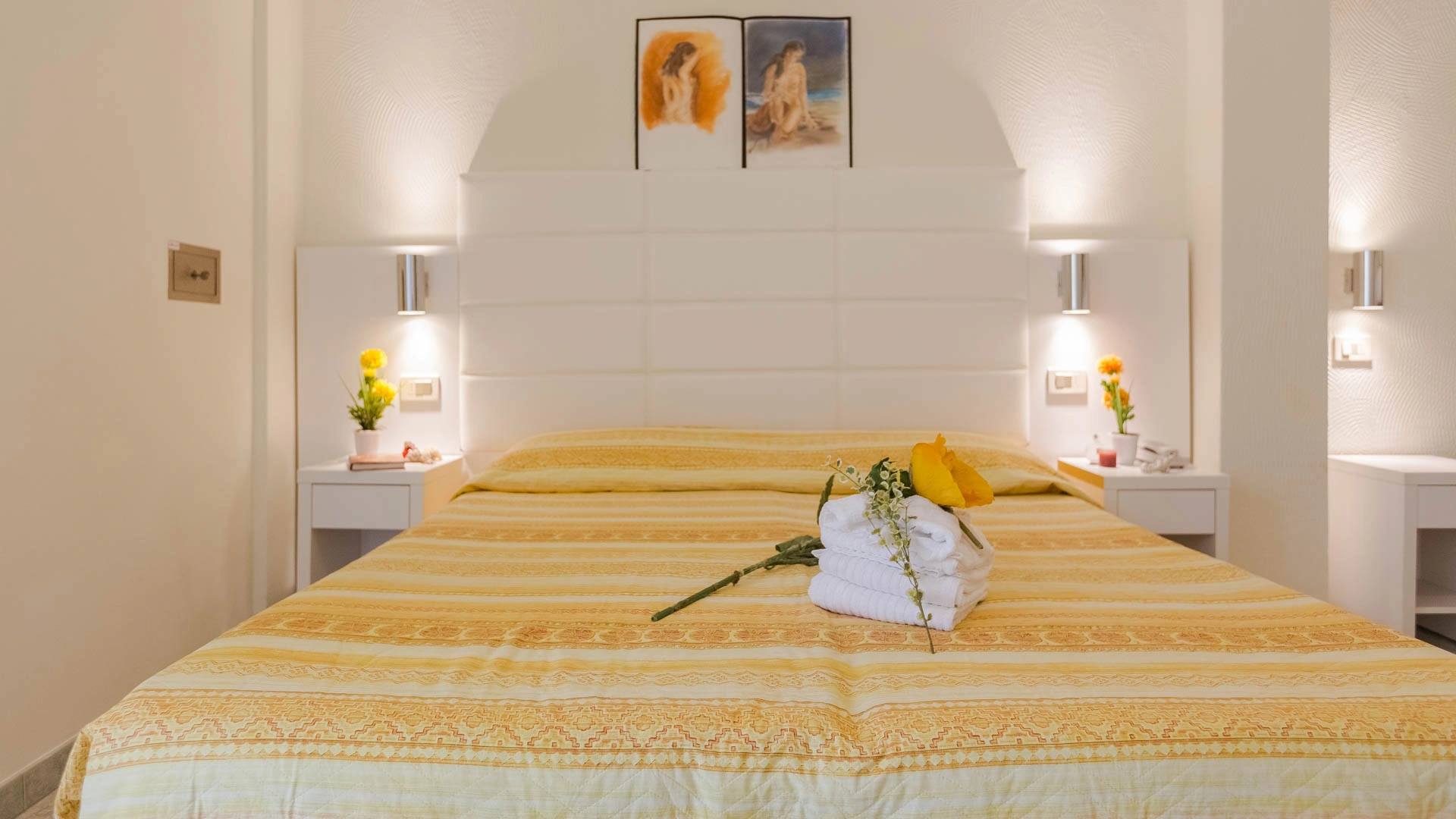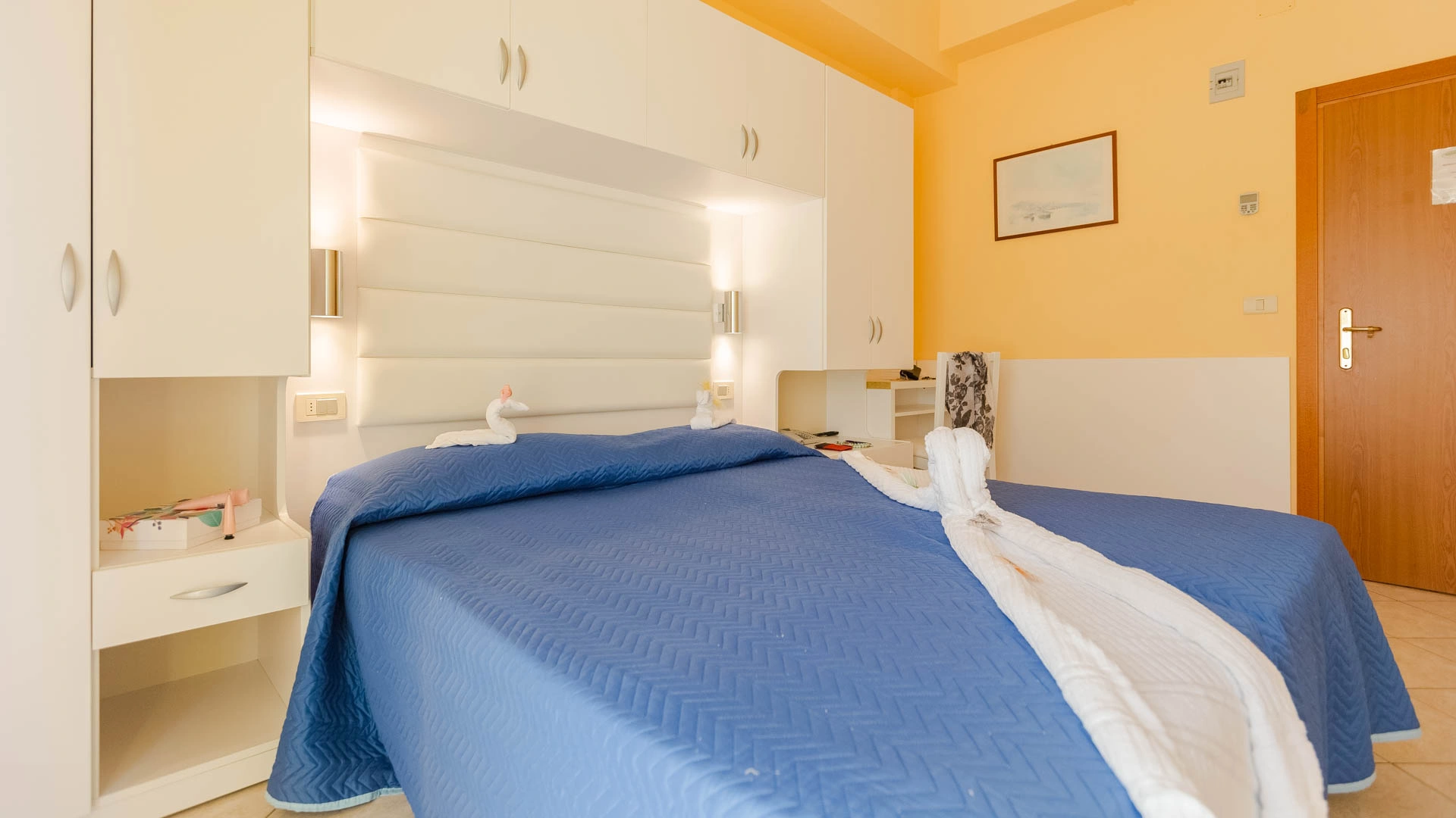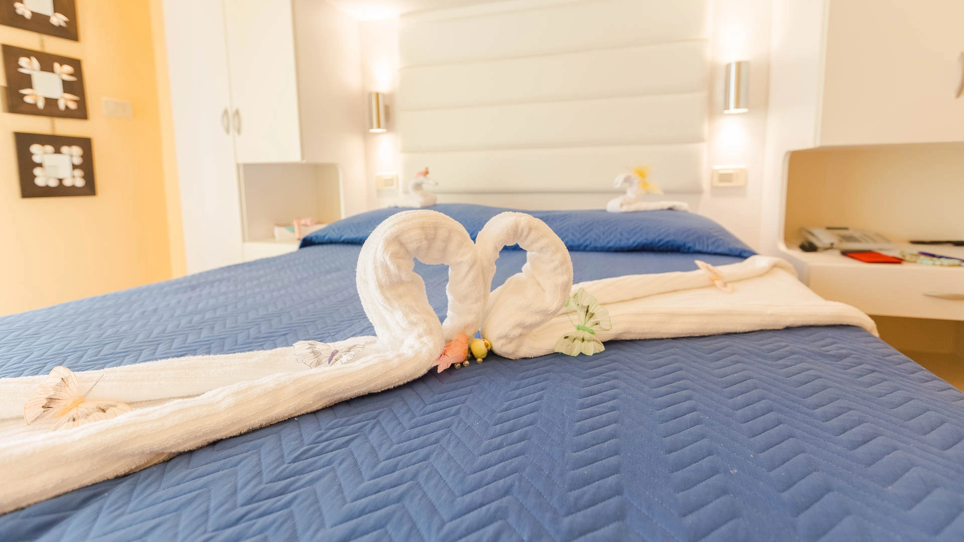 Le camere hanno balcone vista mare (frontale o laterale), aria condizionata, Wi-Fi fibra 100 Mbit/s, cassaforte, telefono, bagno con phon e box doccia, TV digitale terrestre e satellitare; frigobar non fornito disponibile su richiesta, a pagamento. La pulizia avviene a cadenza giornaliera.