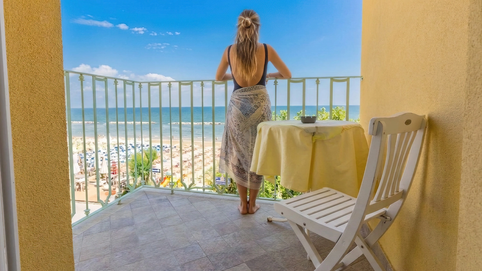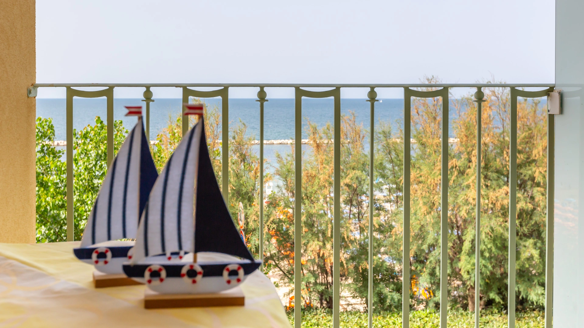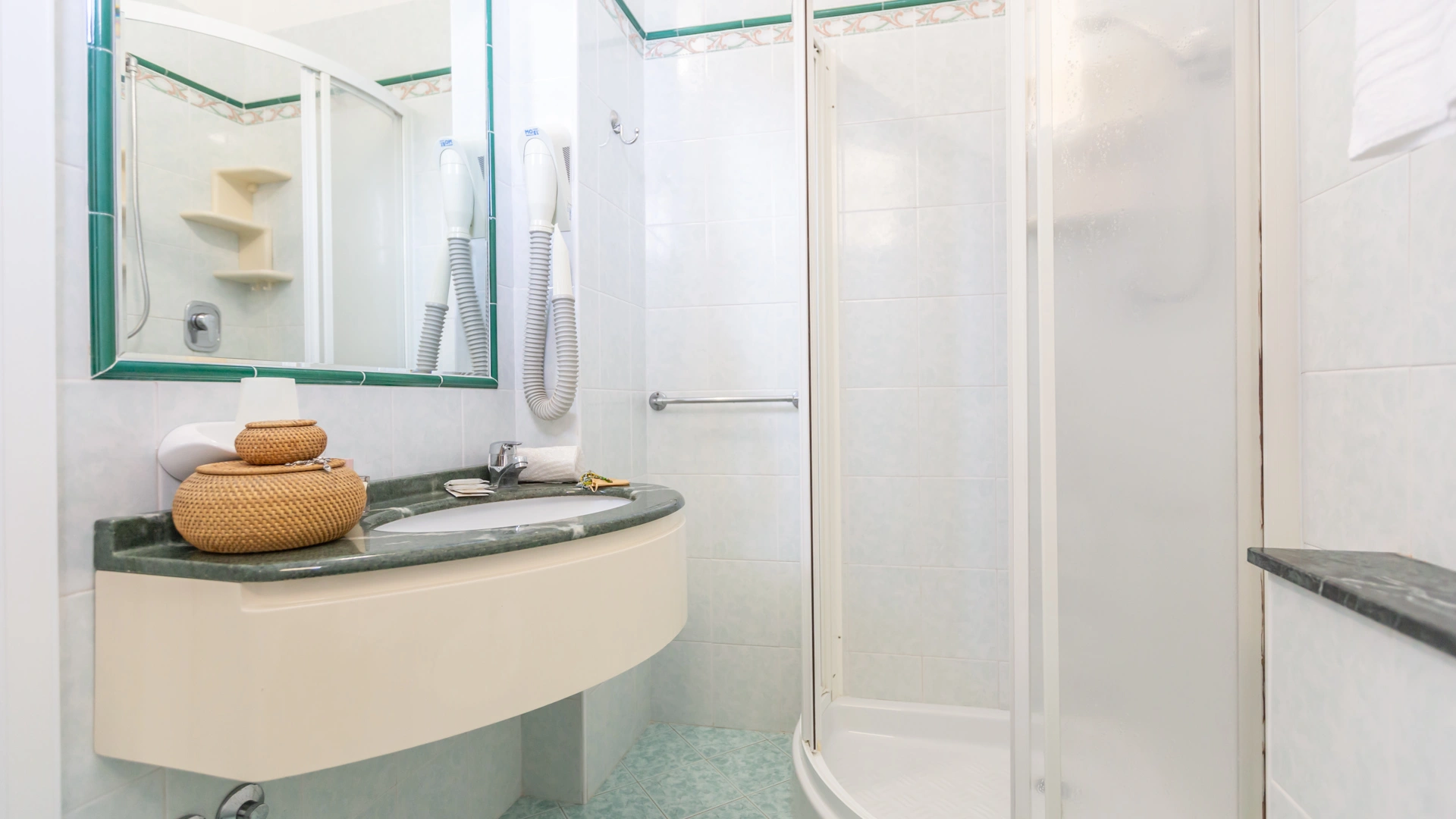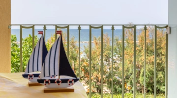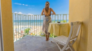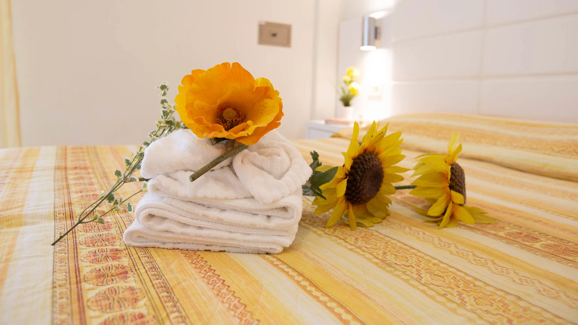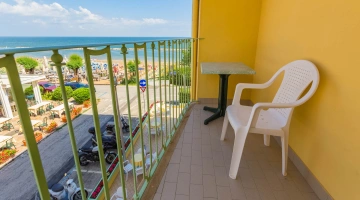 Le camere hanno balcone vista mare (frontale o laterale), aria condizionata, Wi-Fi fibra 100 Mbit/s, cassaforte, telefono, bagno con phon e box doccia, TV digitale terrestre e satellitare; frigobar non fornito disponibile su richiesta, a pagamento. La pulizia avviene a cadenza giornaliera.