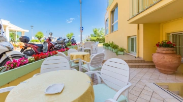 Veranda, terrazza con vista panoramica, ascensore, area bar, sala lettura, biciclette ad uso gratuito. Si organizzano serate a tema.