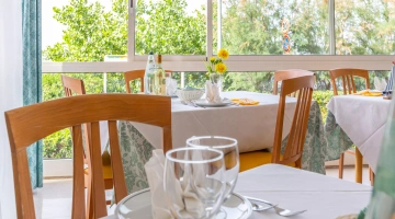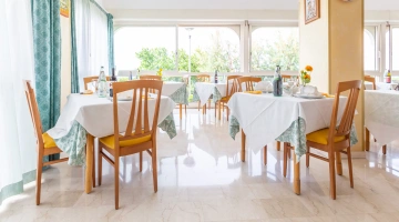Ai pasti: seggiolini a tavola, baby menu, pappe e omogeneizzati (su richiesta). Orari pasti personalizzabili e merenda pomeridiana.