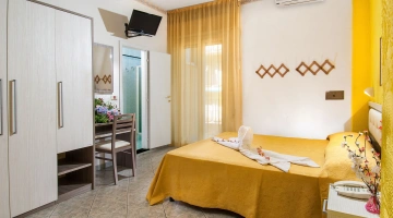 ANIMALI DOMESTICI: accetta animali di piccola e media taglia con pagamento di un supplemento per la sanificazione finale della camera. Accesso a pagamento presso la spiaggia convenzionata (in base alla disponibilità).