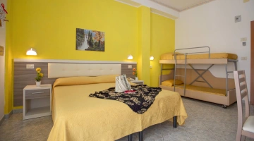 FAMILIARI: disponibili soluzioni familiari con camere triple e quadruple con letti matrimoniali e a castello.
