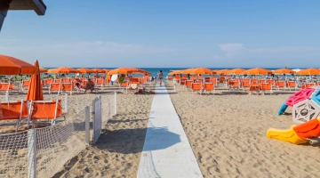 L'albergo è convenzionato con il Bagno n.25, il Bagno n.30 e il Bagno n.36, stabilimenti attrezzati situati di fronte all'hotel e vicino al promontorio di Gabicce. Le spiagge sono attrezzate e dotate di tutti i comfort: ombrelloni, giochi (baby/mini/junior club) e animazione sia per adulti e bambini.
