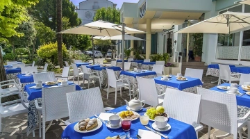 L'hotel si trova nel centro di Gabicce Mare, su Piazza Giardini Unità d'Italia, di fronte al mare. A pochi metri dall’albergo parte la strada panoramica che conduce a Gabicce Monte risalendo il promontorio del monte San Bartolo.
