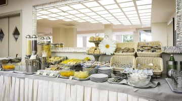 COLAZIONE: dolce e salata a buffet, allestita in giardino, con brioche, dolci fatti in casa, biscotti, marmellate, cioccolata, fette biscottate, yogurt, panini, formaggi, salumi, cereali, prodotti biologici, bevande calde, latte fresco e succhi di frutta. Su richiesta: uova.