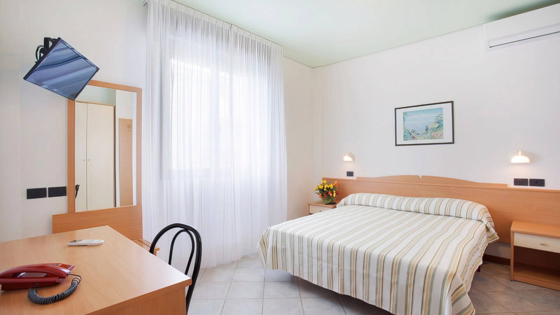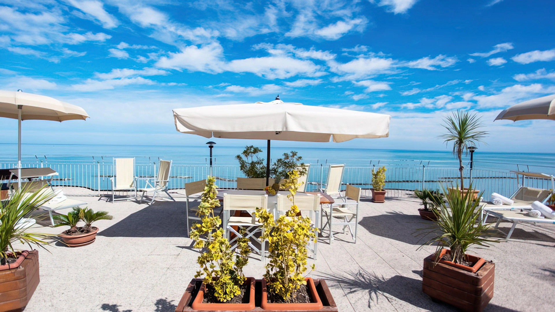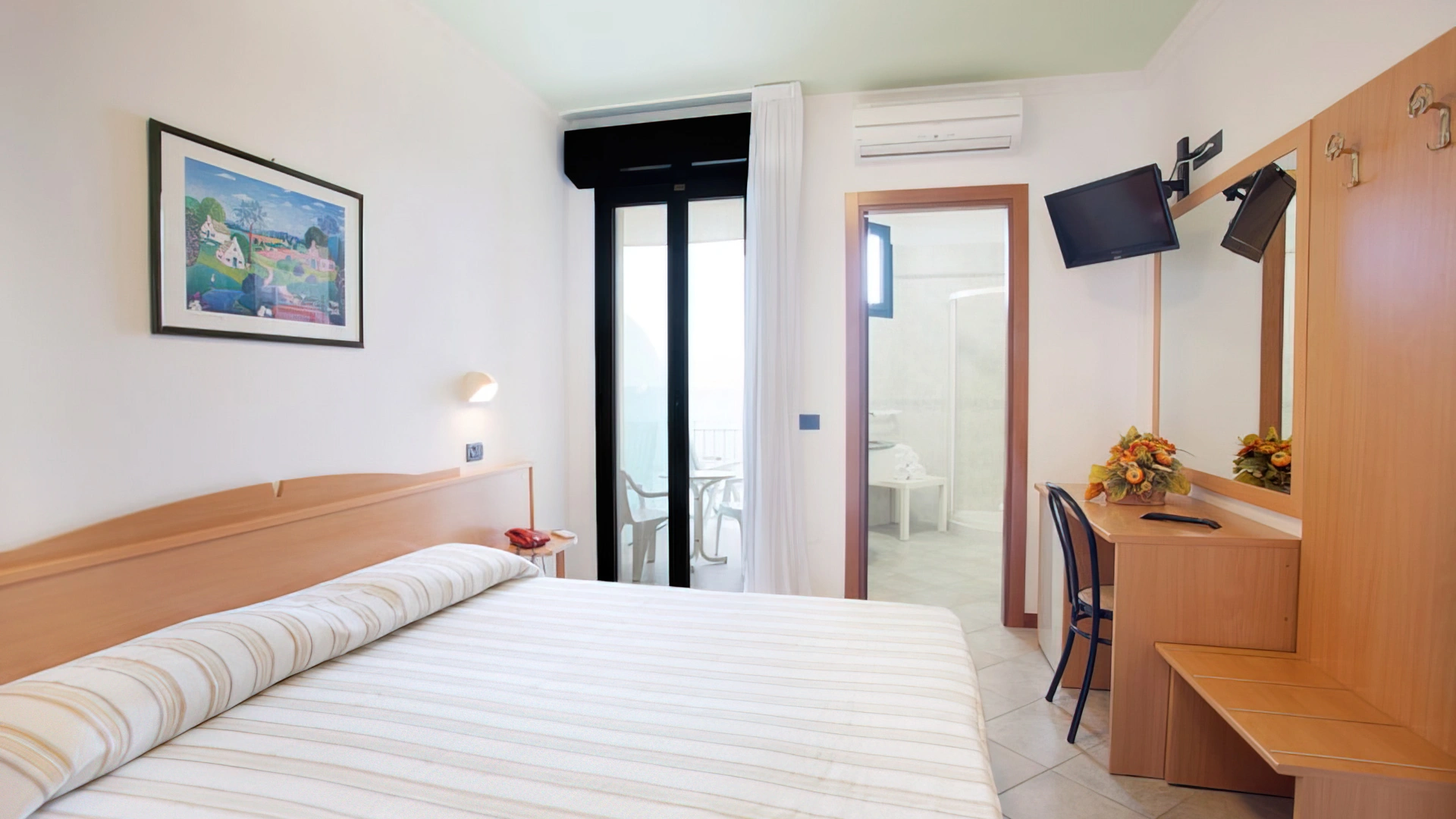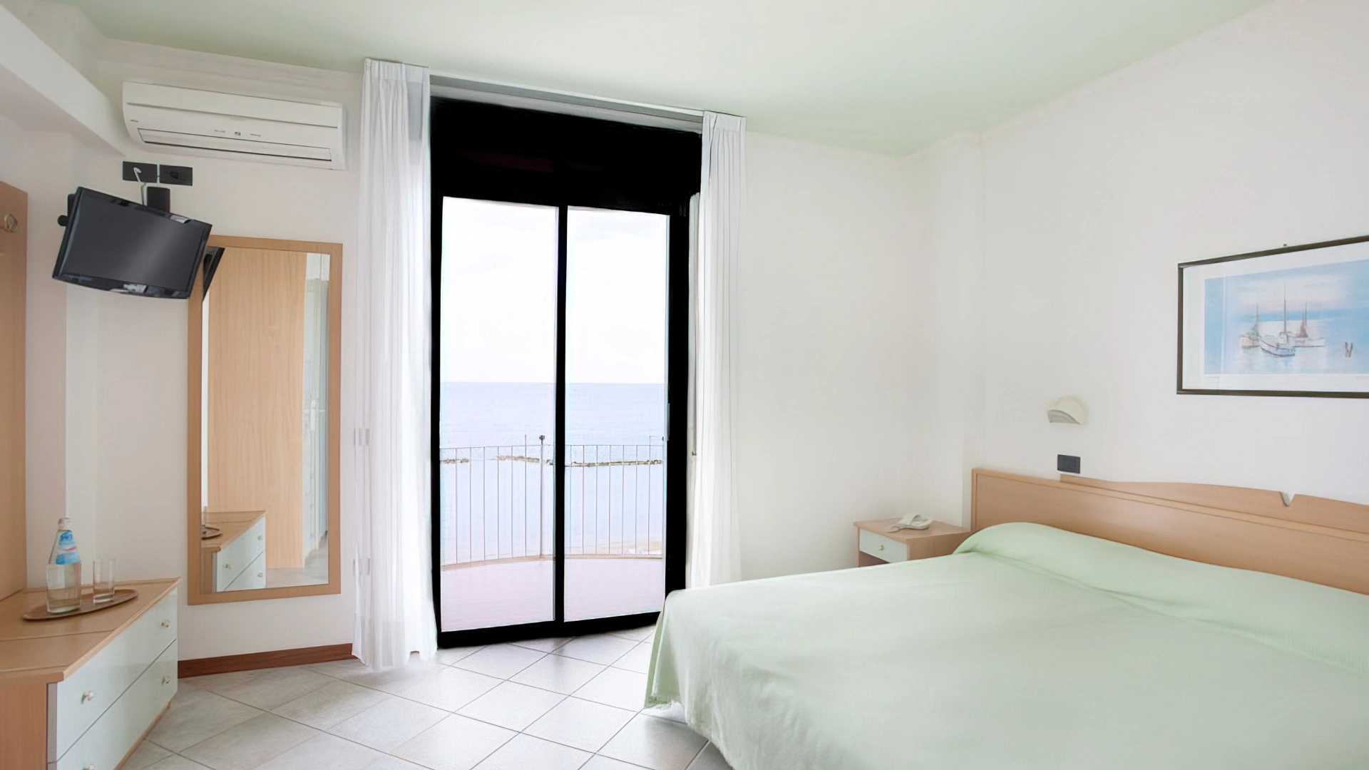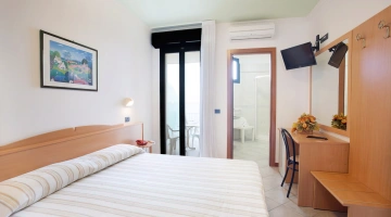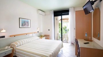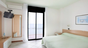 Le stanze sono dotate di vista mare, aria condizionata, Wi-Fi in fibra, Sky TV, cassaforte, telefono, bagno con box doccia e phon. Alcune camere hanno il balcone. Su richiesta è disponibile il frigobar.
