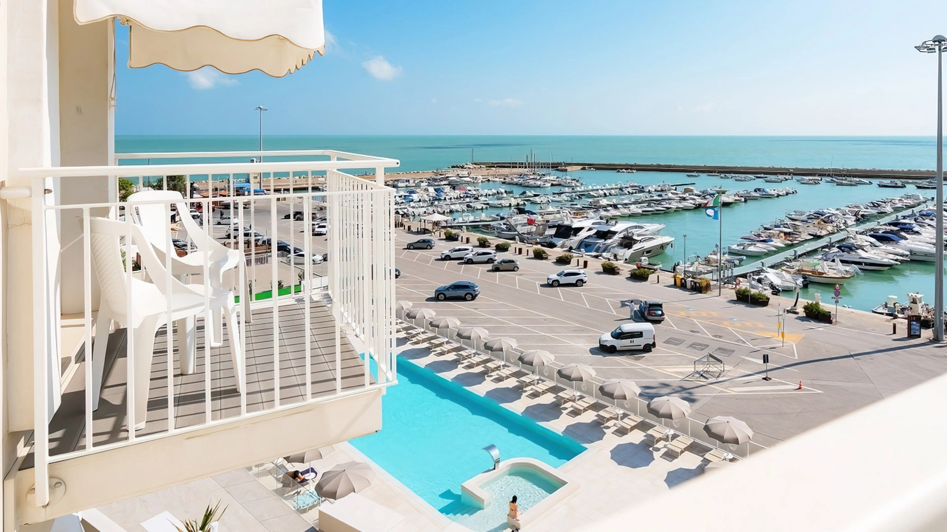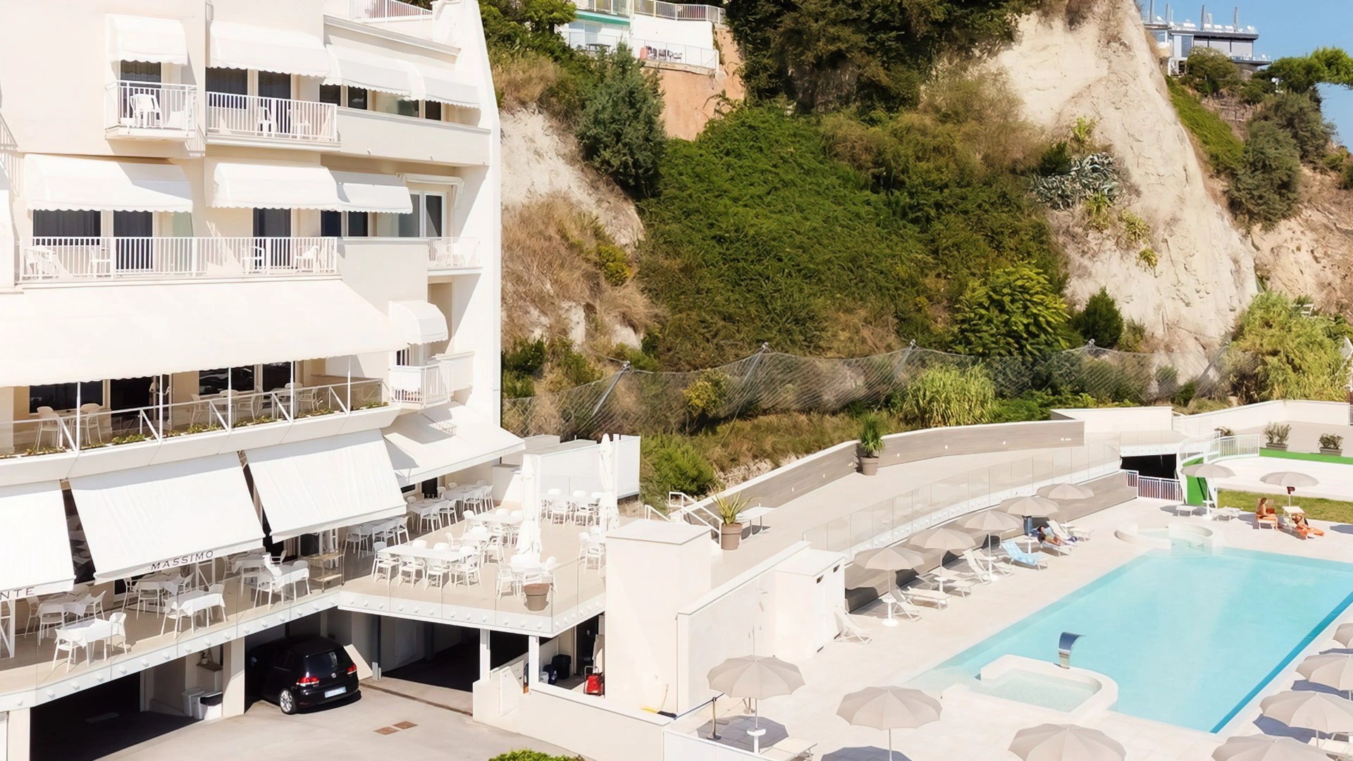 L’hotel è situato in centro a Numana, a pochi minuti a piedi dal porto turistico e dalla spiaggia. Al centro storico si arriva in 5 minuti di passeggiata salendo per la caratteristica scalinata della Costarella che collega la zona del porto alla parte alta della città. Sirolo dista meno di 5 minuti di auto, mentre la stazione ferroviaria più vicina, quella di Osimo-Castelfidardo, è raggiungibile in un quarto d'ora. Per l'aeroporto di Ancona-Falconara occorrono circa 30 minuti di viaggio.