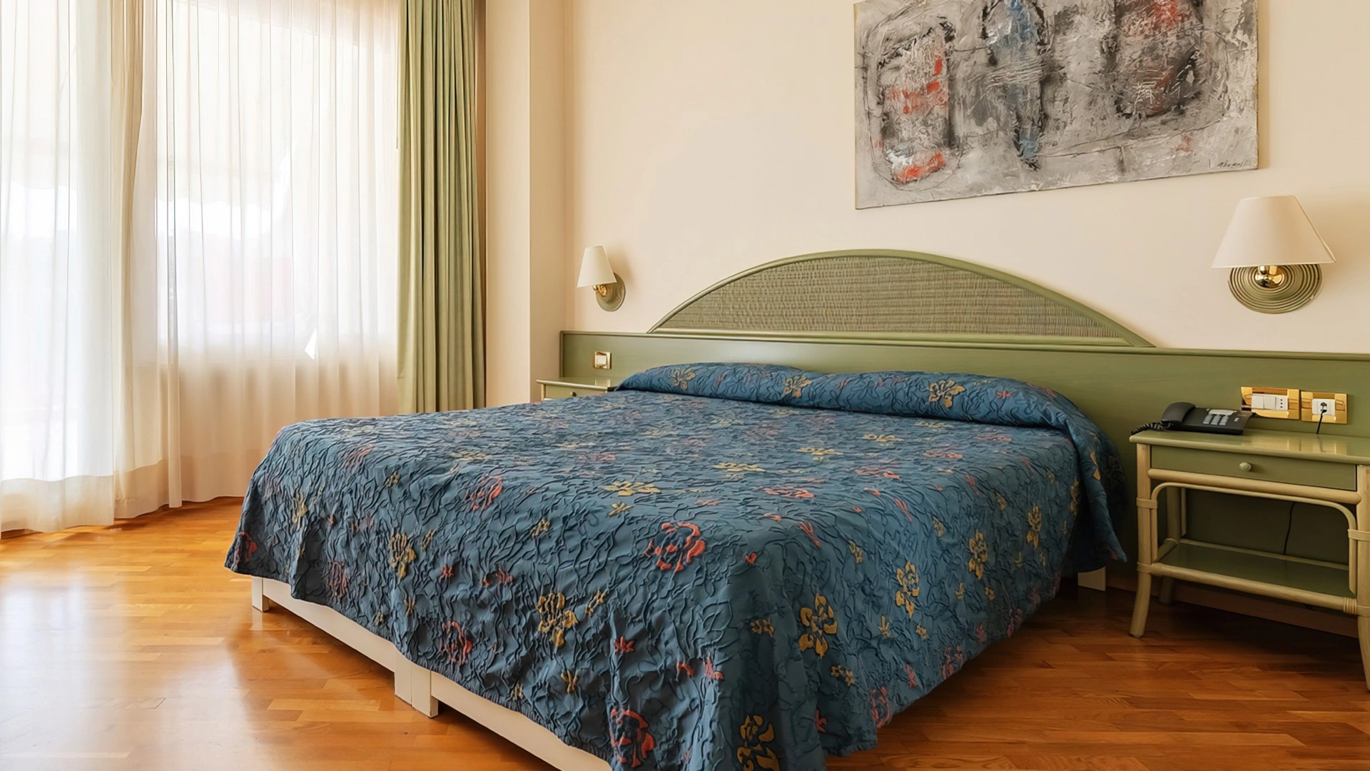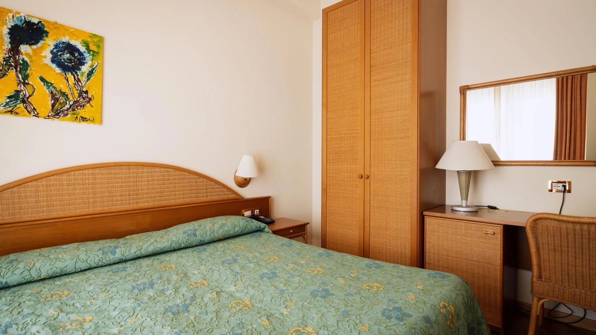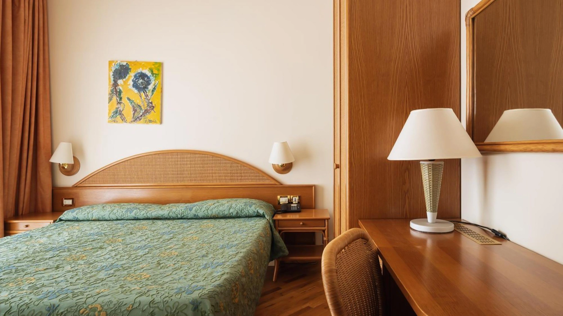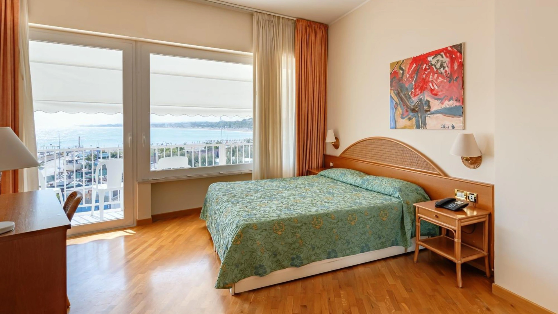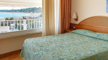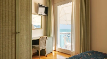 Arredate in stile classico, le sistemazioni presenti sono disponibili nelle varianti singola, doppia/matrimoniale, tripla e quadrupla. Tutte le camere sono dotate di aria condizionata, TV, frigobar, cassaforte, telefono e bagno con doccia o vasca. Alcune sono fornite di balcone e godono di vista sul mare.