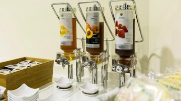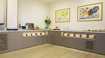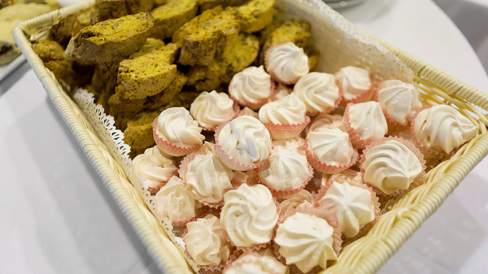 COLAZIONE: buffet dolce e salato allestito con torte, cornetti caldi, affettati, salumi dell'entroterra, carta delle uova, yogurt, cereali, frutta fresca, succhi di frutta e bevande calde di caffetteria.