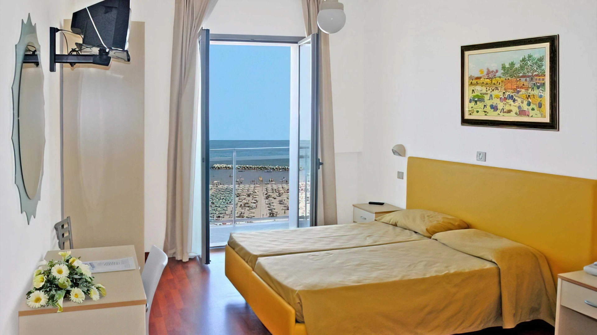 Tutte le camere sono dotate di balcone, TV satellitare, cassaforte, telefono, bagno con box doccia e phon, aria condizionata (in alcune camere, a pagamento). Alcune offrono la vista sul mare. Room service a pagamento.
