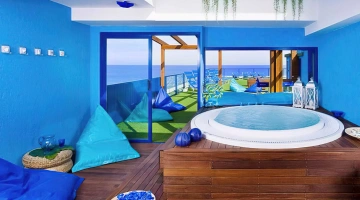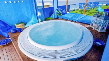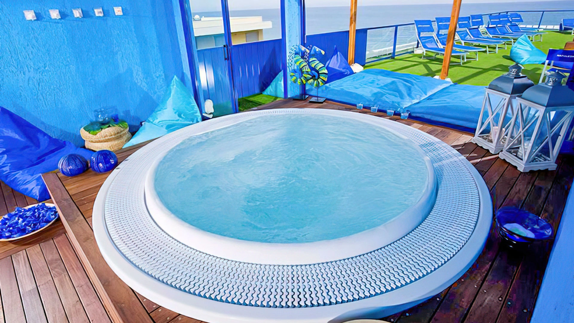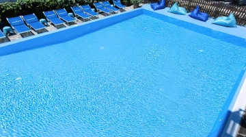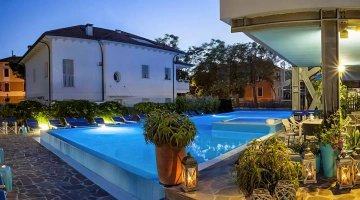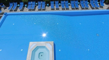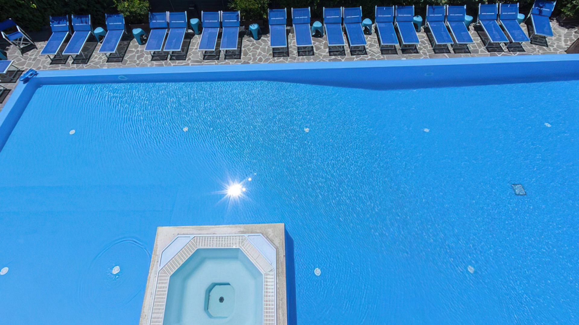 In hotel è presente un'ampia piscina (165 mq) con effetto spiaggia e acqua profonda al massimo 140 cm, esposta al sole per tutto il giorno e circondata da lettini. Inoltre sono presenti 2 vasche idromassaggio riscaldate (una in giardino e una interna nella Spa) che possono ospitare fino a 6 persone ciascuna.