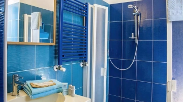 SERVIZI PER DISABILI: ingresso con rampa inclinata, ascensore a norma, camera con spazio di manovra in sedia, doccia accessibile e sedia per doccia.