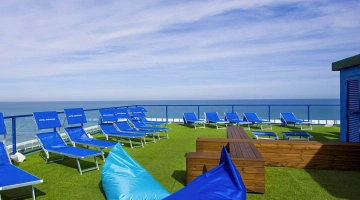 Il Centro benessere dell'hotel è dotato di cascata di ghiaccio, idromassaggio, sauna finlandese, bagno turco, docce emozionali, possibilità di massaggi. Si trova all'ultimo piano con annesso terrazzo solarium con vista sul mare. Presente un angolo solarium naturista.