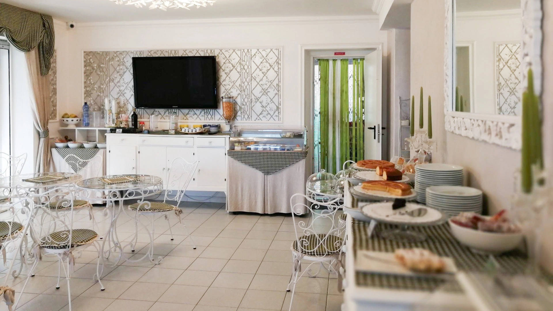 L'hotel propone una colazione continentale a buffet con opzioni senza glutine su richiesta. Il pasto viene servito in una sala dedicata, al chiuso in inverno e in veranda in estate.