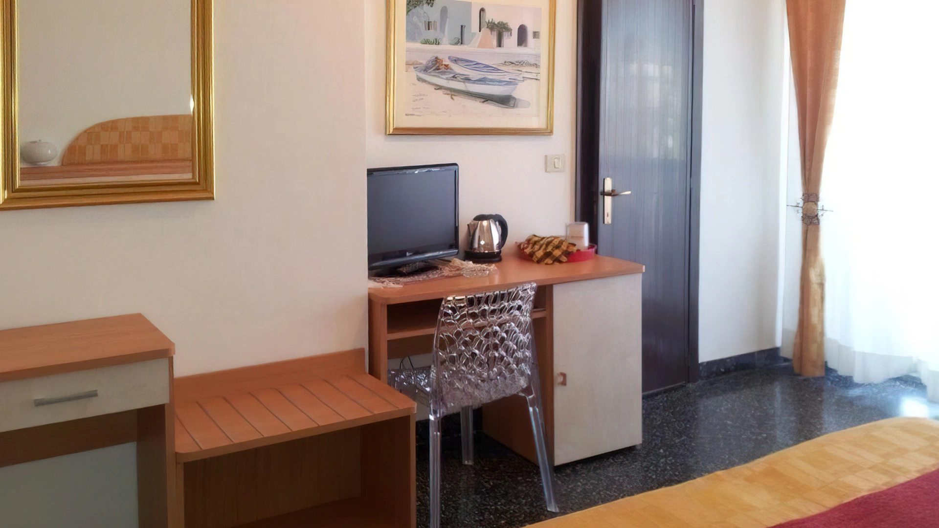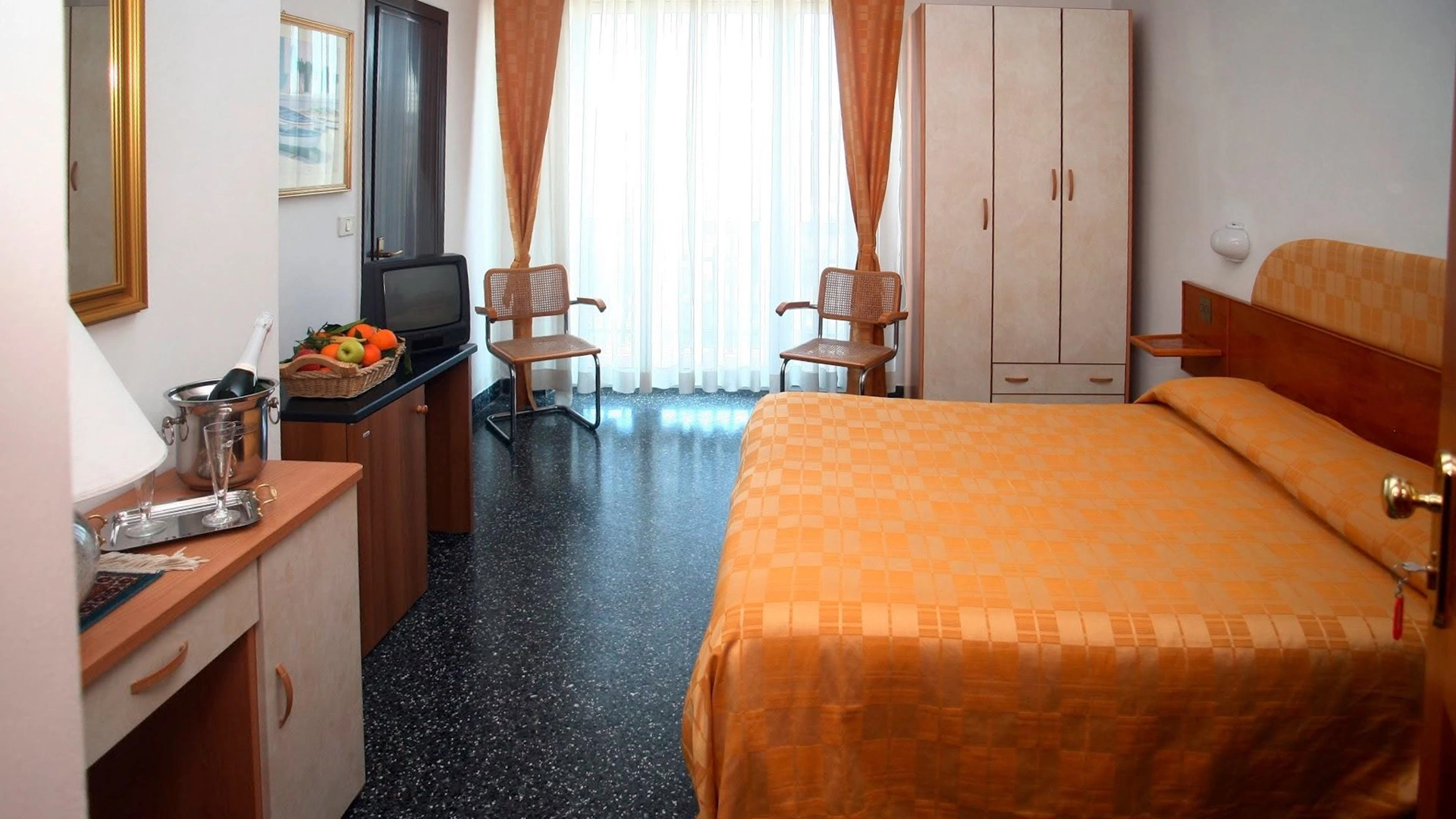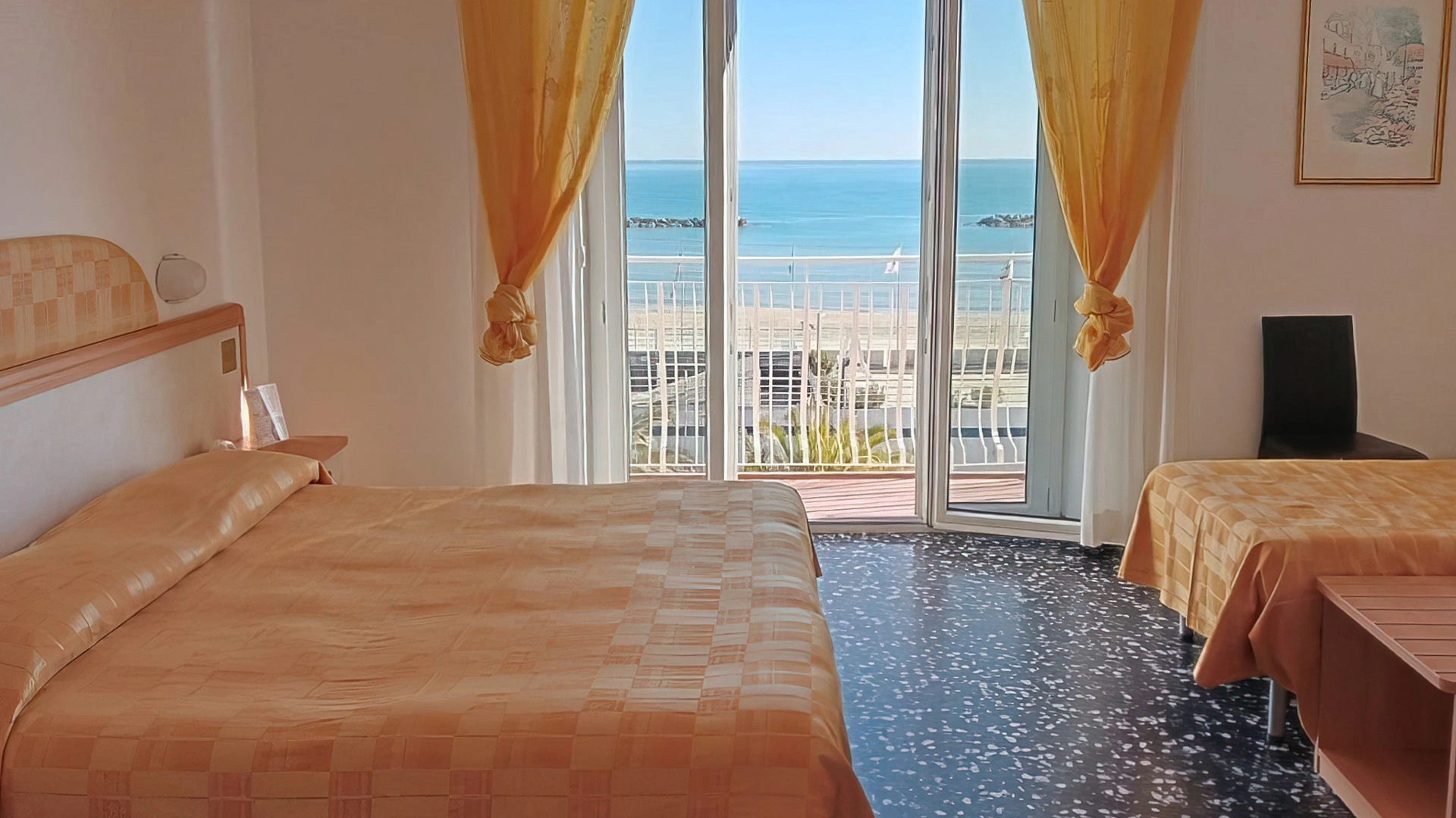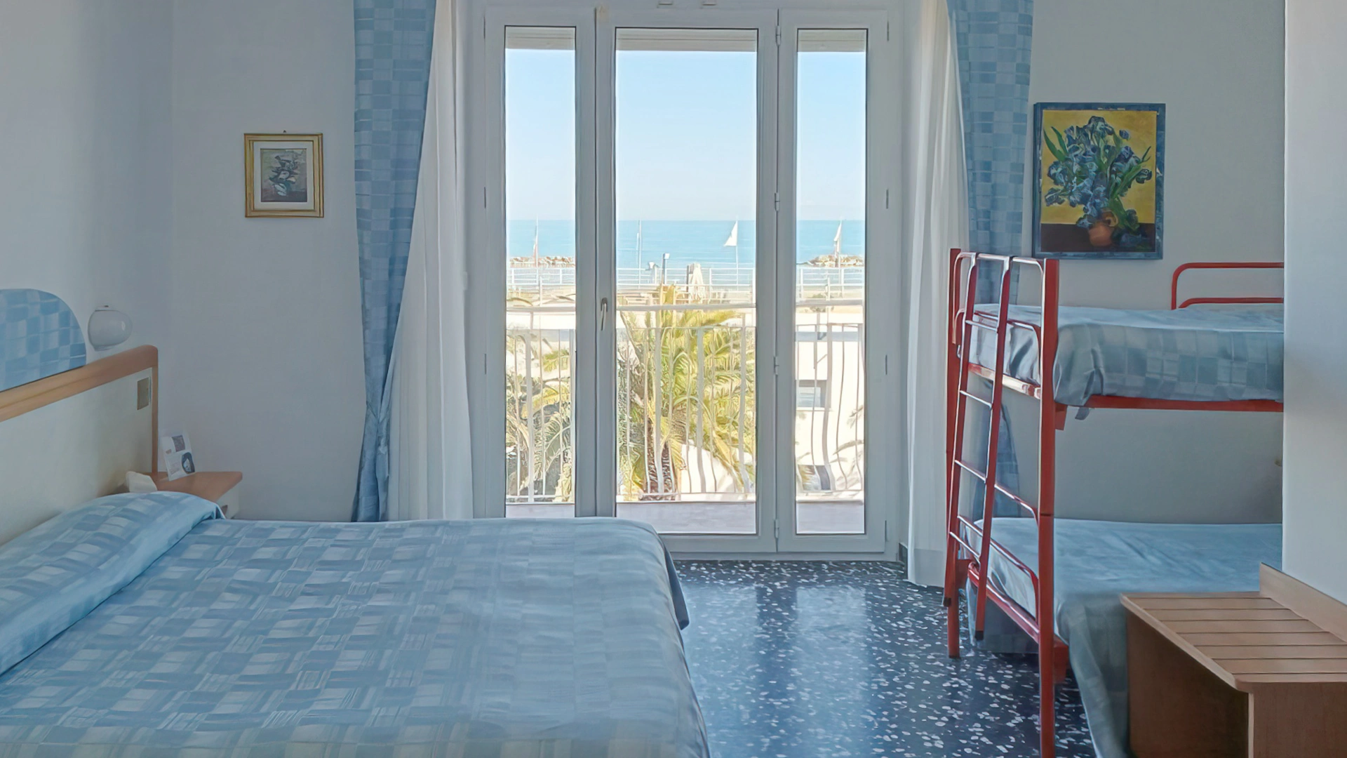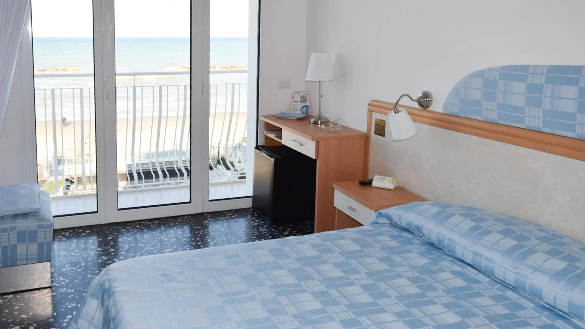 La struttura mette a disposizione camere dotate di aria condizionata autonoma, riscaldamento, smart TV, connessione Wi-Fi gratuita, cassaforte, frigobar e bagno con box doccia, phon e set di cortesia. Una parte delle camere dispone di balcone vista mare arredato con tavolini e sedie.