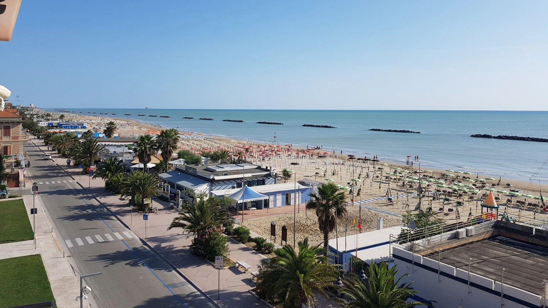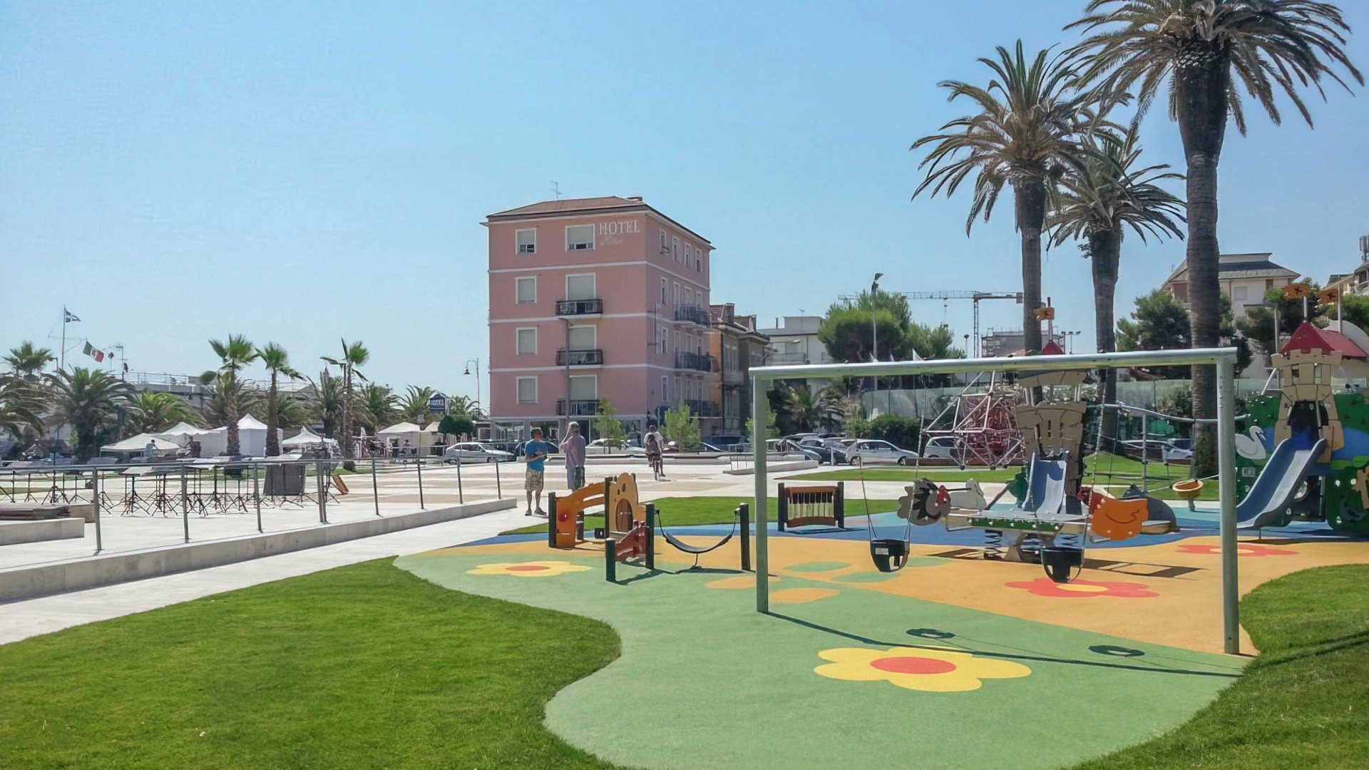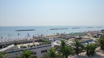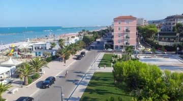 L'hotel si trova in posizione fronte mare a Porto San Giorgio, a pochi passi da Piazza Bambinopoli, area dedicata allo svago dei più piccoli. La stazione ferroviaria è raggiungibile a piedi in meno di 5 minuti, mentre il centro cittadino in circa 10 minuti. Per arrivare al casello autostradale di Fermo-Porto San Giorgio occorrono 20 minuti in automobile, mentre per l’aeroporto di Ancona circa 45 minuti.
