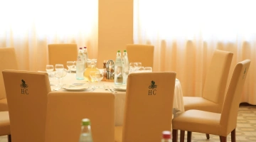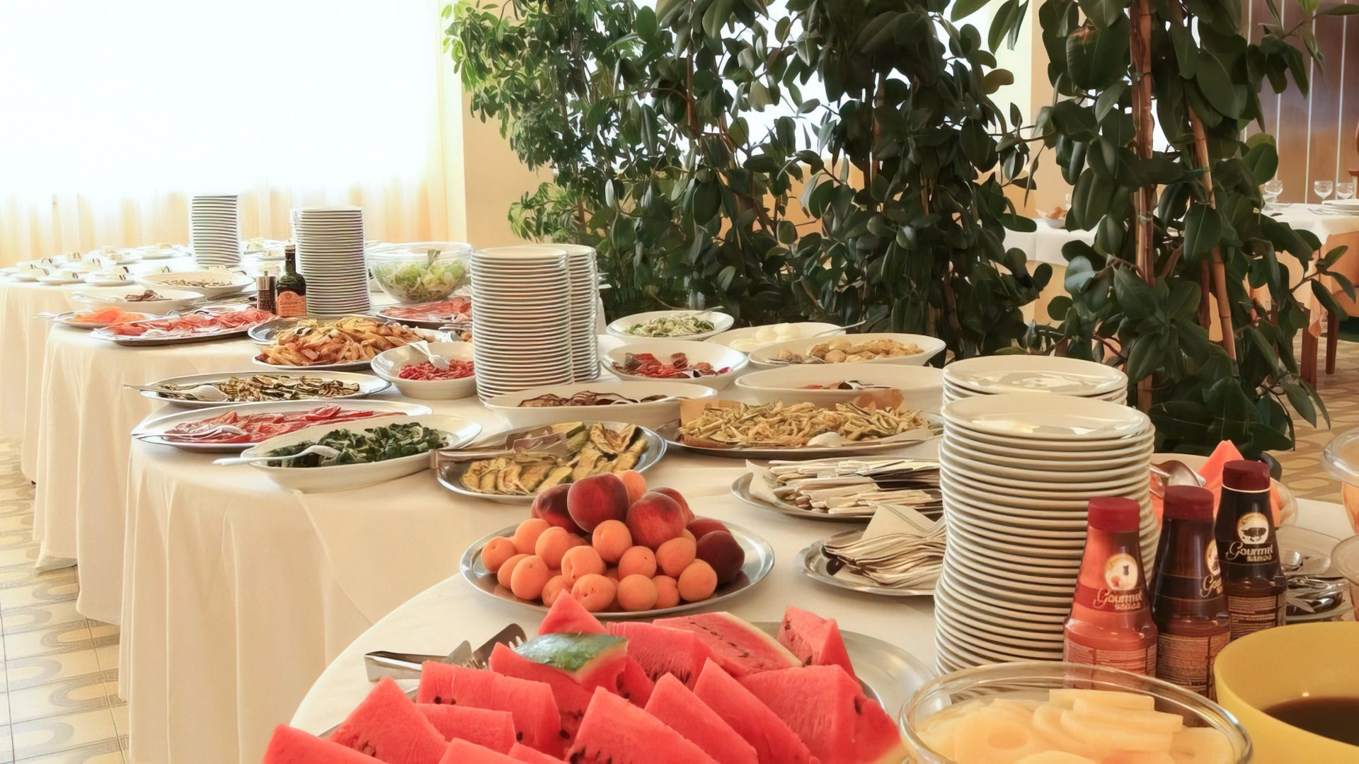 La colazione continentale viene servita a buffet nella sala apposita o, su richiesta, anche in camera. Il ristorante interno offre pranzi e cene ispirate alla cucina tradizionale marchigiana, accompagnati da un buffet di contorni. Vengono serviti menù speciali per chi segue diete particolari.