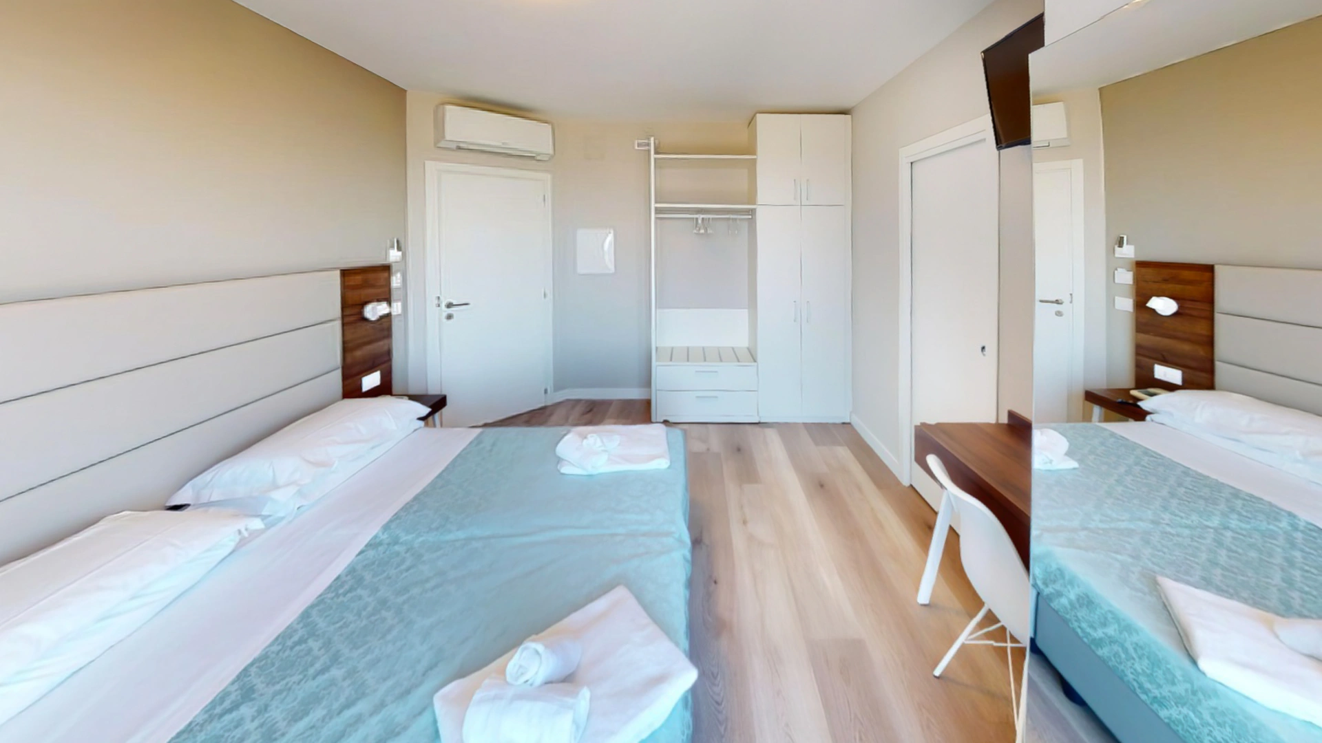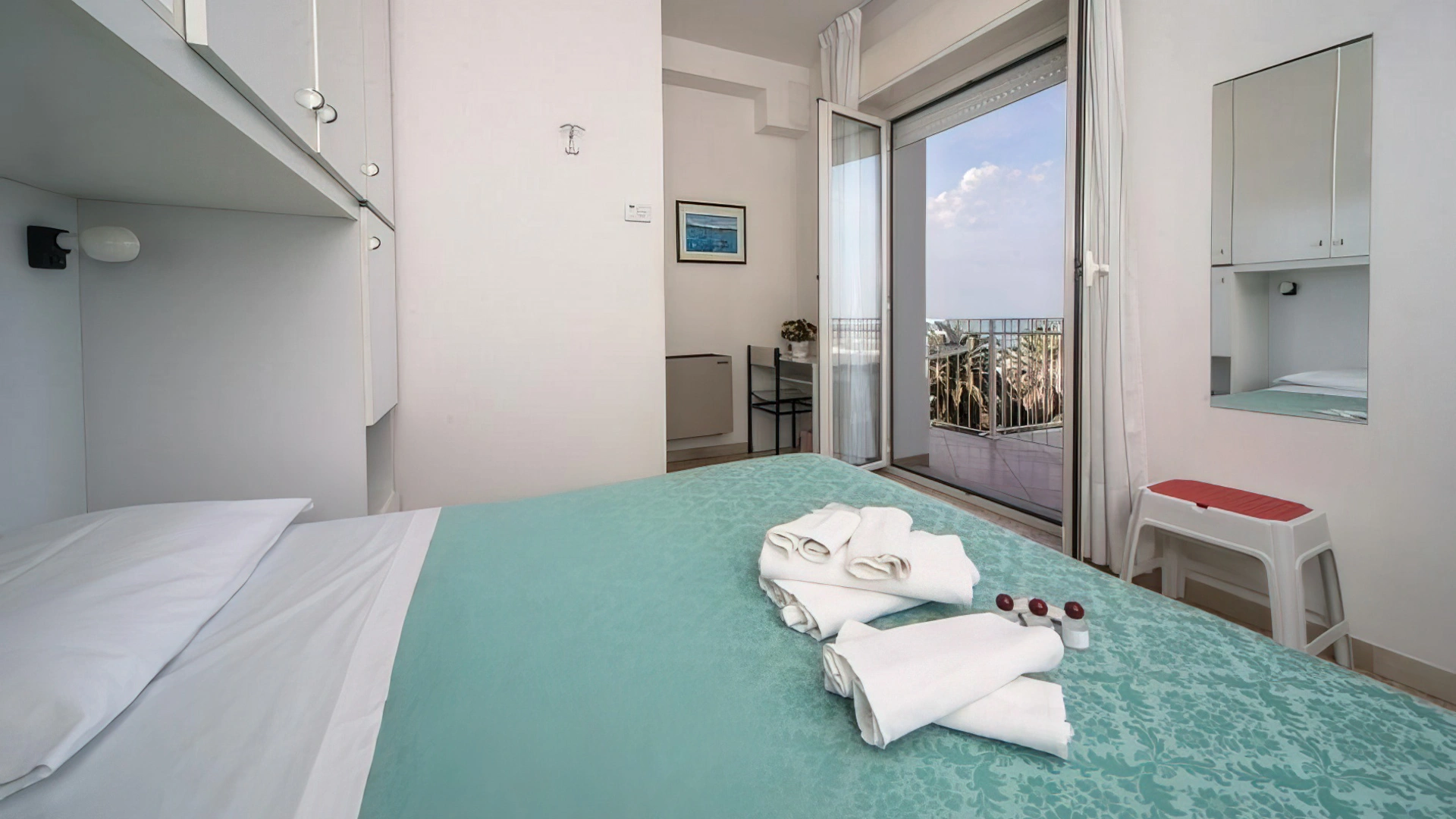 Le sistemazioni sono dotate di balcone, aria condizionata, TV, connessione Wi-Fi, cassaforte, telefono, bagno privato con phon e set cortesia. Alcune camere offrono la vista mare. Sono presenti sistemazioni per famiglie e stanze comunicanti.