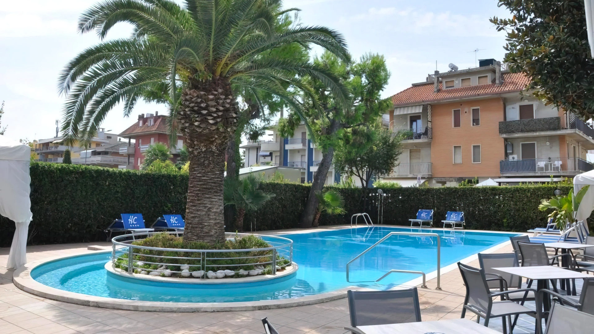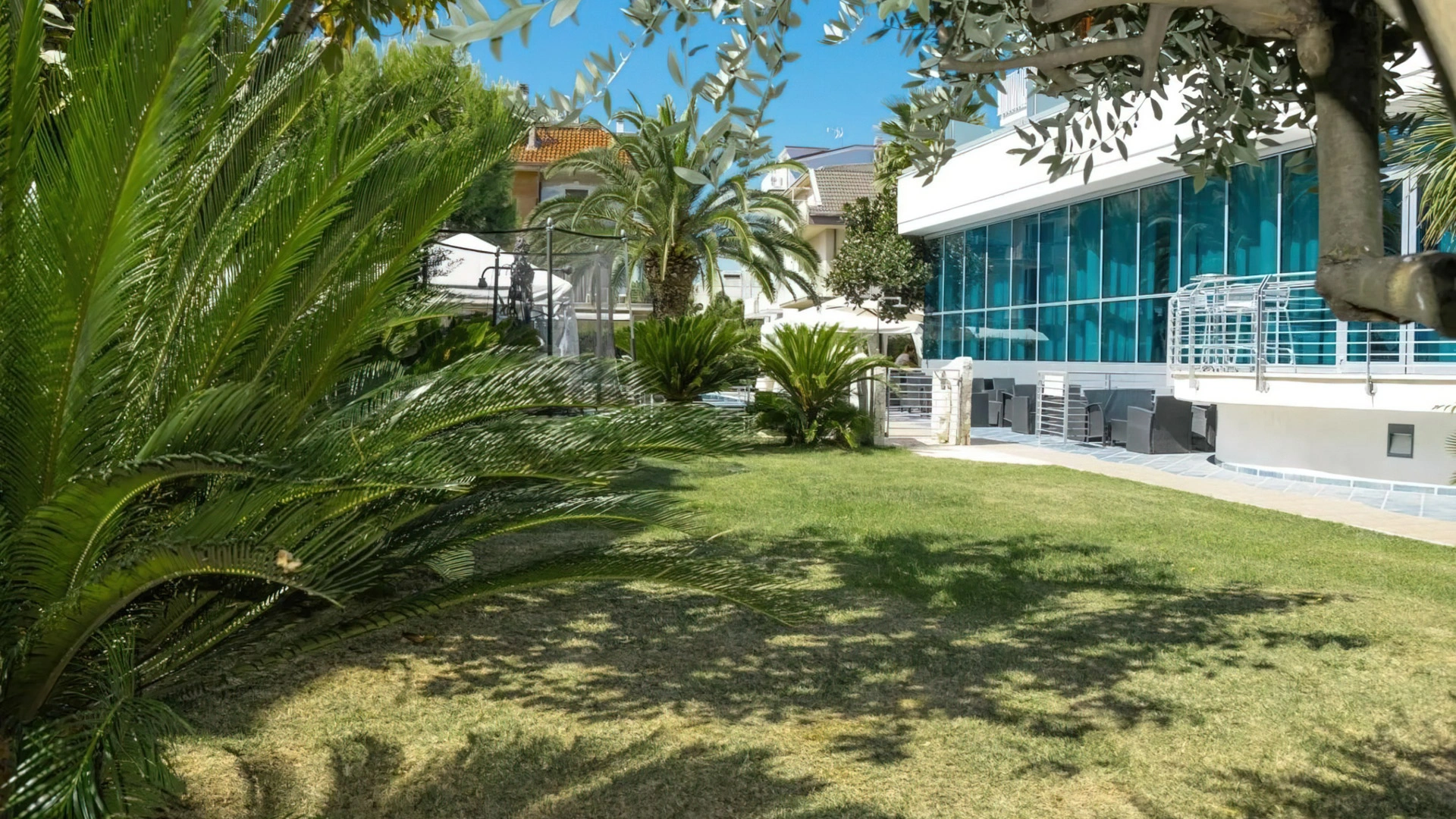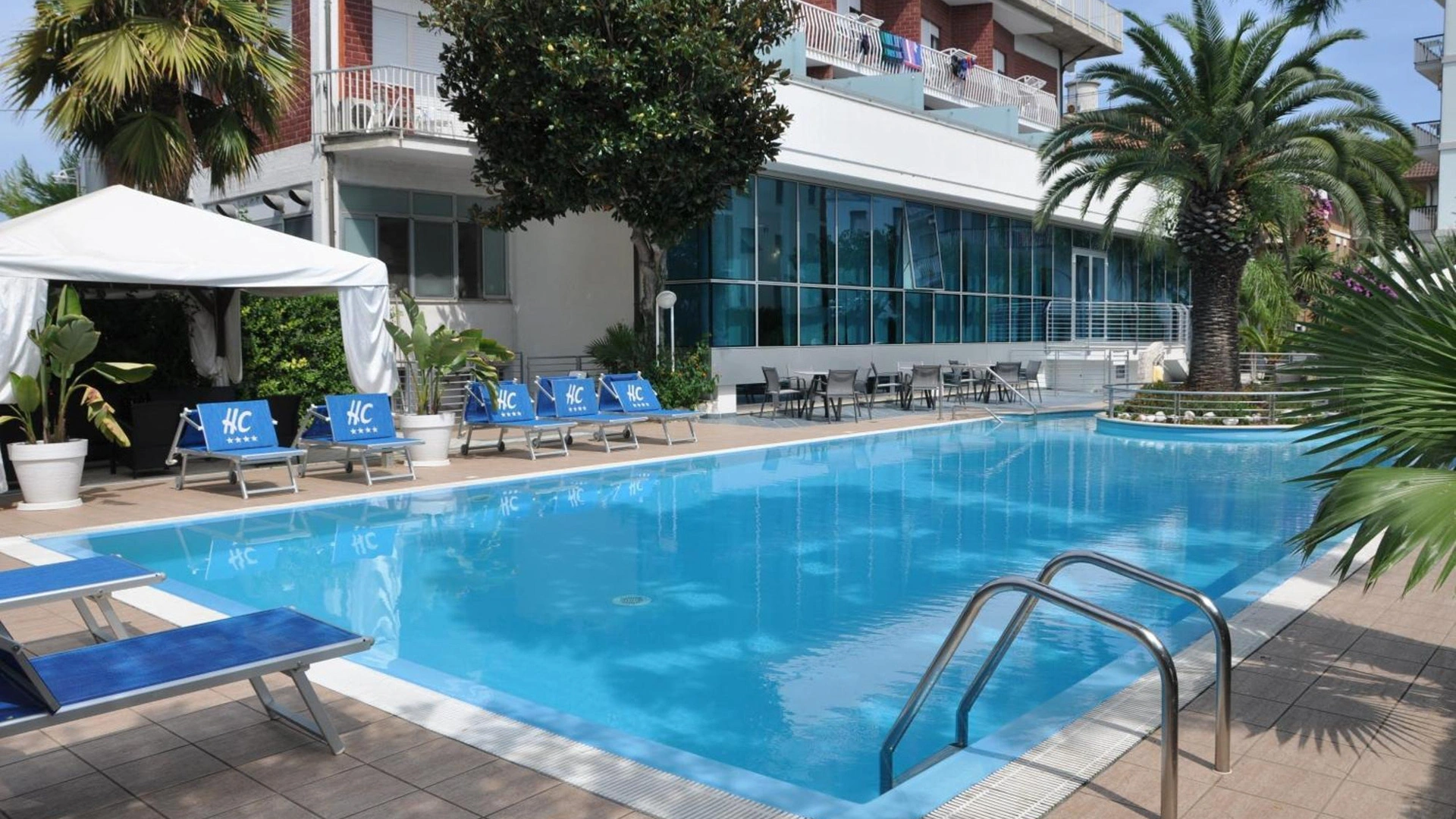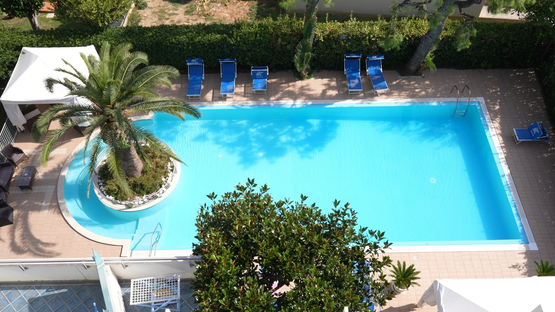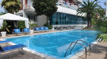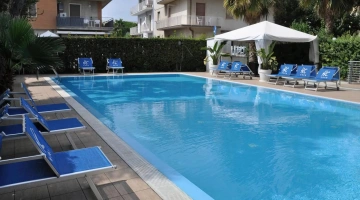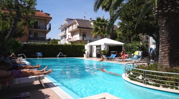 In giardino è presente una piscina stagionale con zona idromassaggio, circondata da un'area adibita a solarium con ombrelloni e lettini. L'accesso è gratuito, con obbligo di cuffia per i capelli.