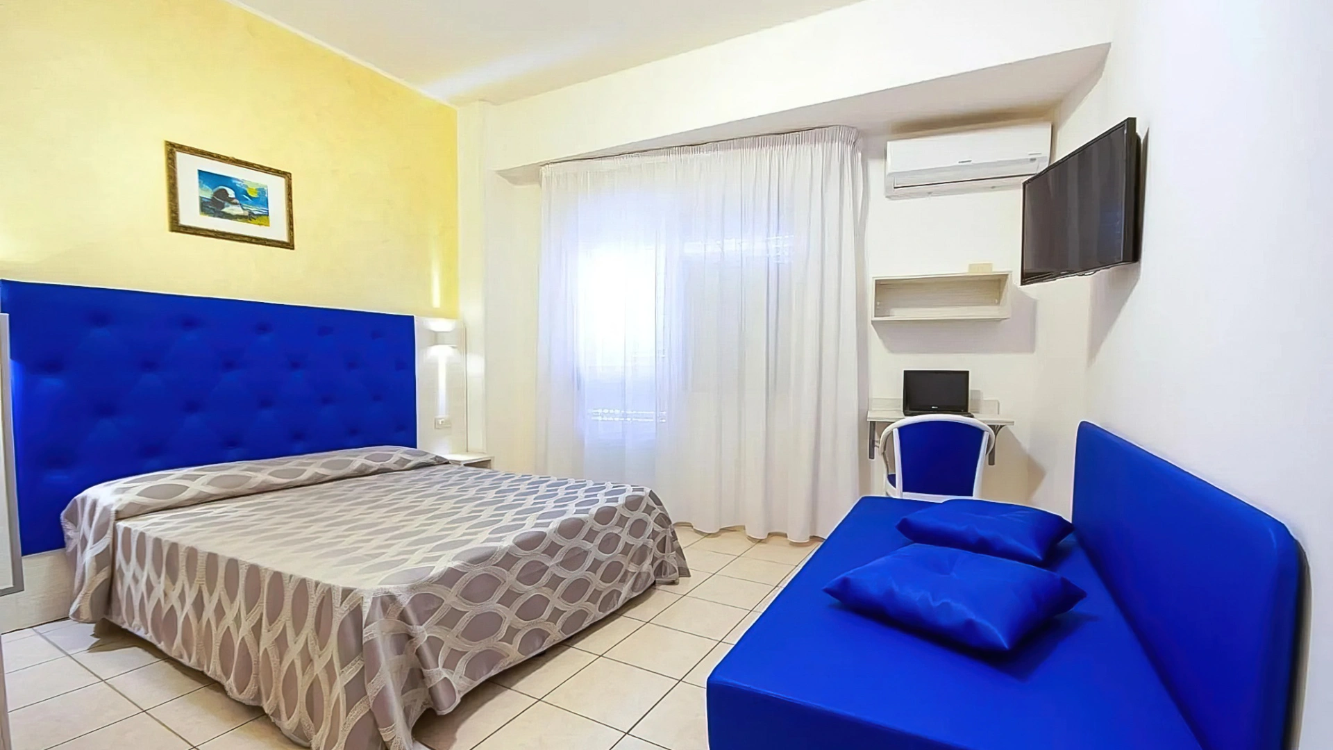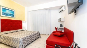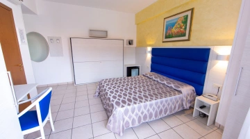 Le camere, in grado di ospitare fino a 4 persone, sono caratterizzate da arredi in stile classico o moderno e vivaci dettagli di colore. Tutte le sistemazioni sono dotate di telefono, cassaforte, aria condizionata autonoma, TV, frigobar, connessione Wi-Fi, balcone e bagno con box doccia, phon e set di cortesia.