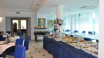 La colazione, servita ogni mattina a buffet in sala ristorante, propone opzioni dolci tra cui crostate e ciambelloni di produzione interna. Per il pranzo e la cena sono disponibili piatti a base di carne e pesce preparati a partire da materie prime a km 0, accompagnati da una selezione di vini. Disponibili su richiesta variazioni di menu per intolleranze o altre esigenze alimentari.