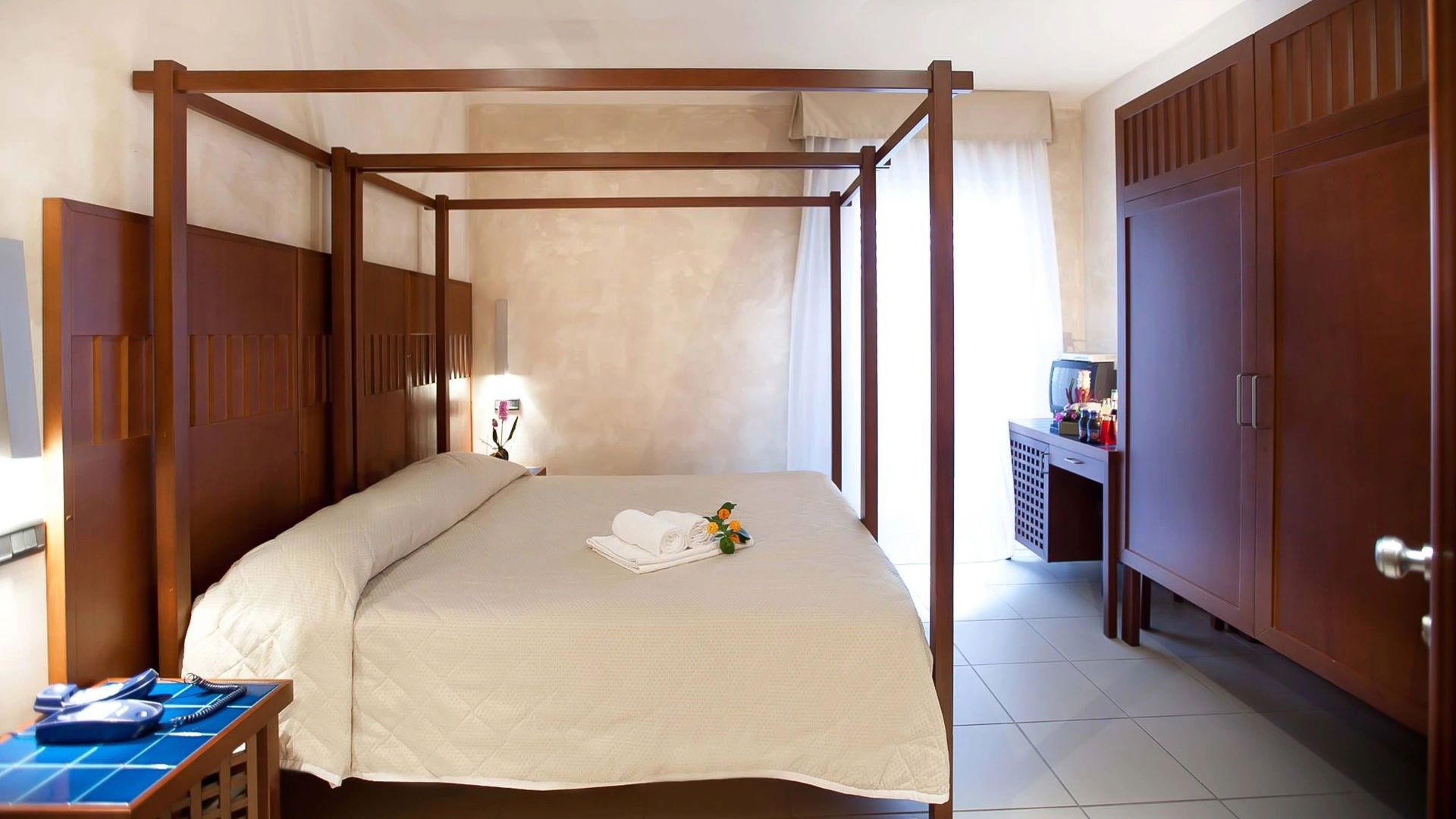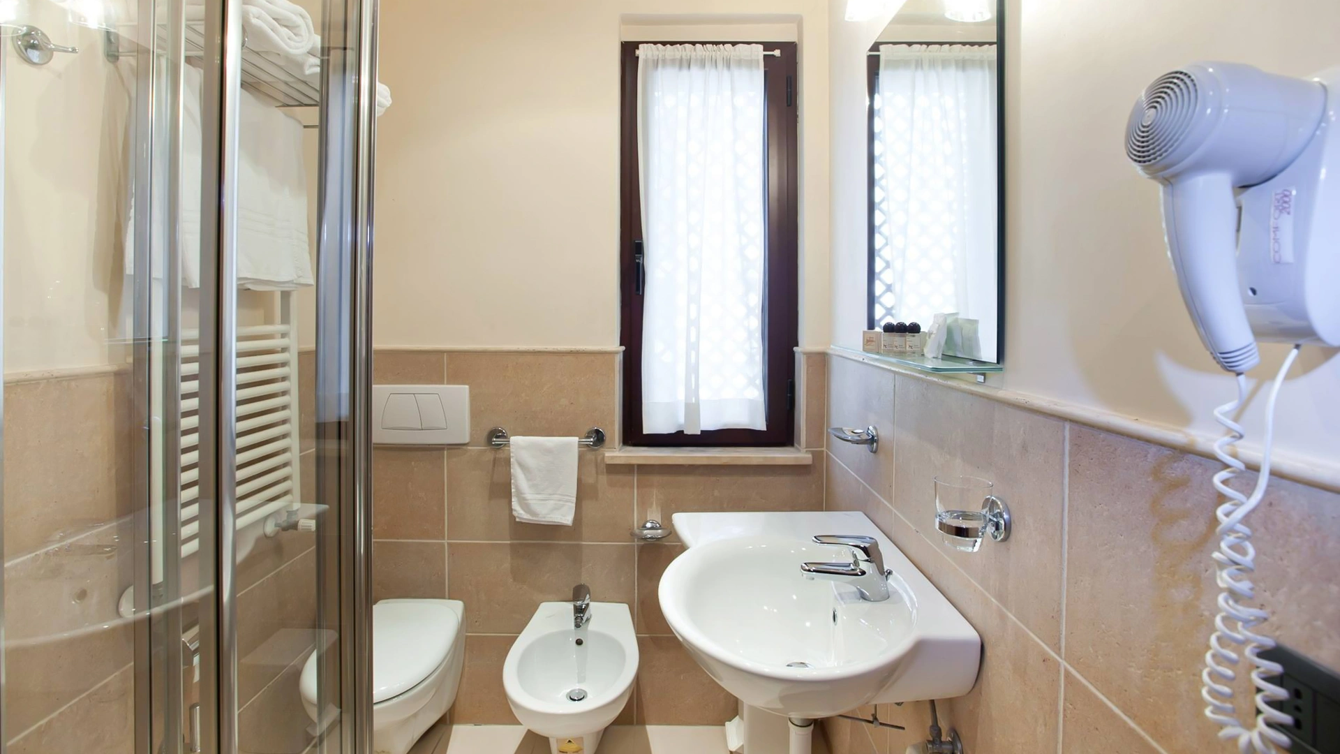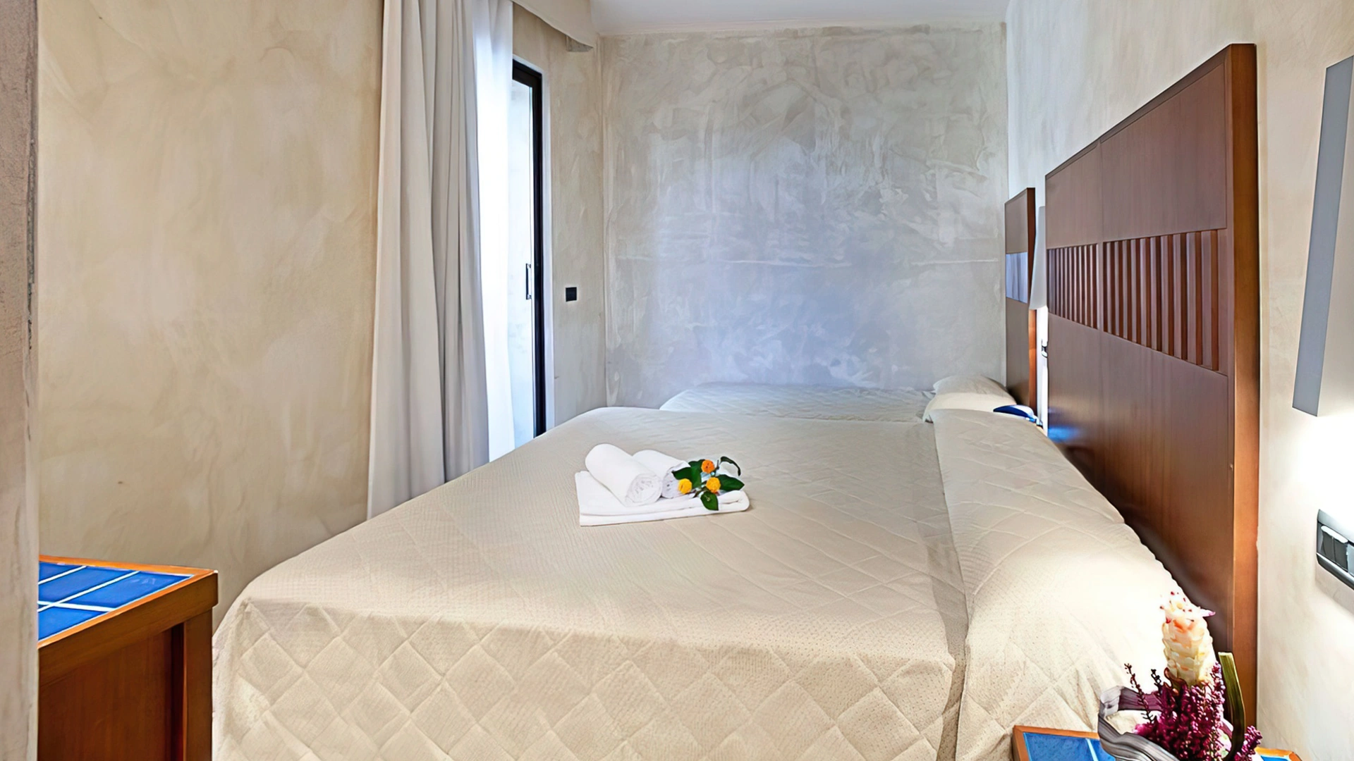 Sono presenti camere dotate di TV LCD satellitare, aria condizionata e riscaldamento, frigobar, cassaforte, telefono, Wi-Fi, servizi privati con box doccia, phon e set cortesia. A disposizione stanze con balcone.