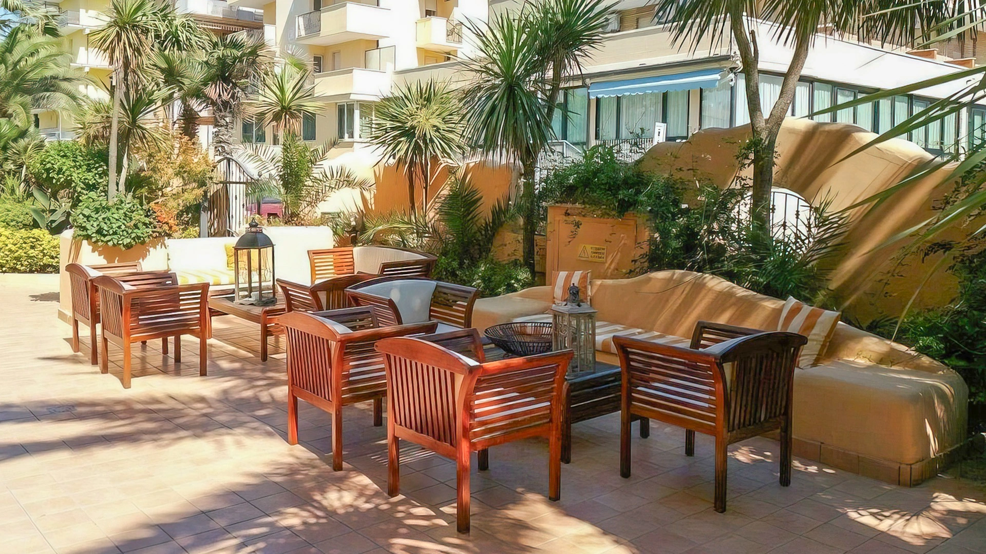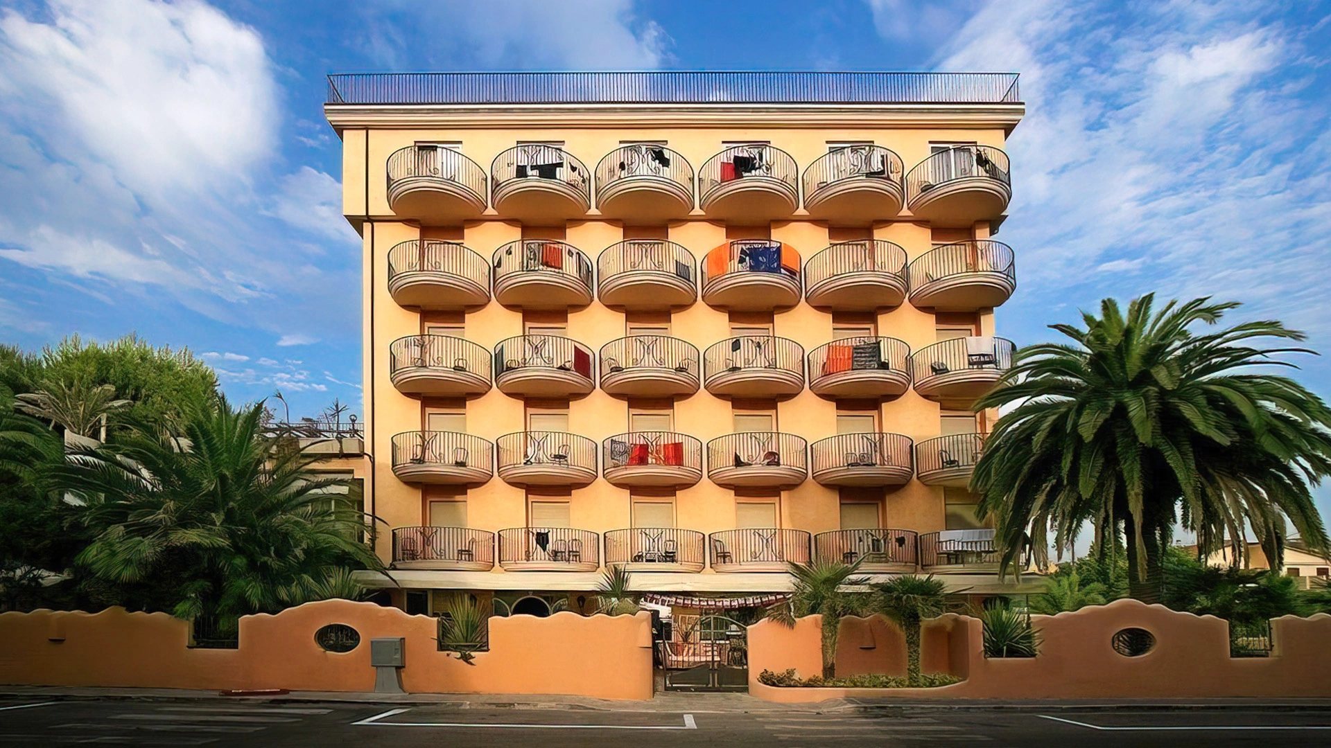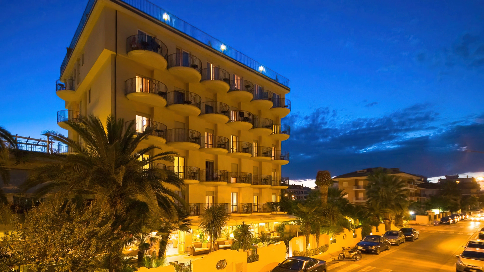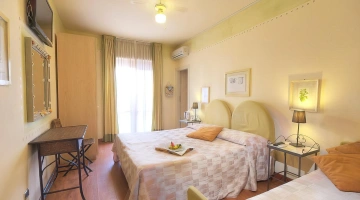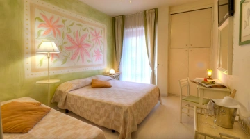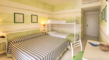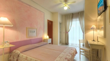 L’hotel offre sistemazioni di vario tipo, tutte dotate di aria condizionata, connessione Wi-Fi, cassaforte, TV da 32”, bagno privato con phon, box doccia e set di cortesia. Alcune camere dispongono di balcone con vista sul lungomare, altre sono arricchite da frigobar e canali Sky, mentre le soluzioni più esclusive includono un terrazzo panoramico e vasca idromassaggio. È inoltre disponibile un’ampia sistemazione composta da tre ambienti separati e due bagni, con terrazza vista mare e Jacuzzi esterna.