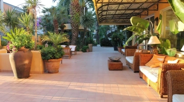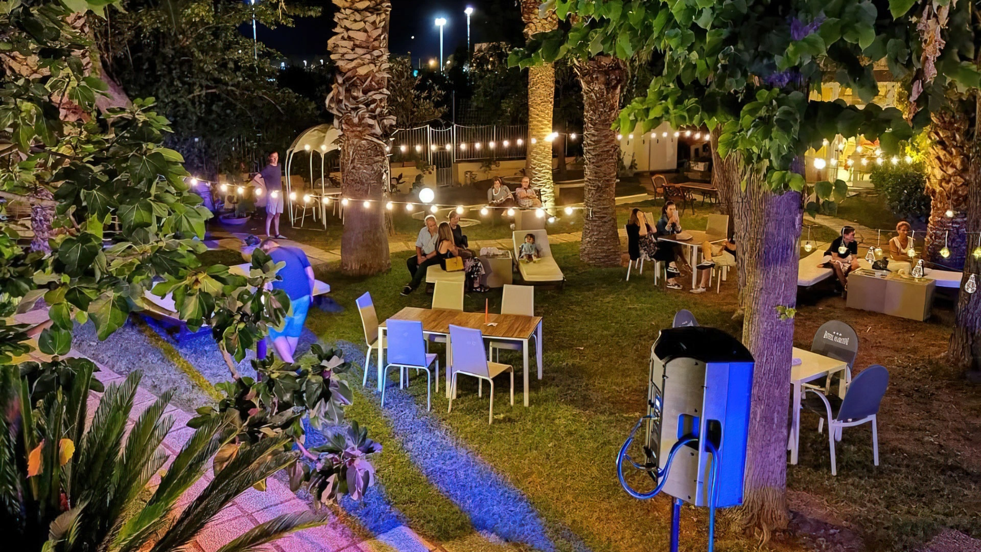 La struttura, di recente ristrutturazione, dispone di parcheggio privato gratuito. Sono presenti un giardino, un minigolf da 5 buche, un tavolo da ping pong e una terrazza solarium. Gli interni, arredati in stile coloniale, propongono un American bar aperto 24h, una sala TV con consolle giochi, una sala lettura, una zona disco con biliardo e proiettore. Lo staff mette a disposizione su richiesta il servizio navetta.