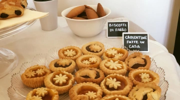 La colazione, con prodotti biologici a km 0, è sia dolce che salata e viene servita a buffet nella sala comune o, se si desidera, in camera. Su richiesta sono disponibili menù per esigenze alimentari particolari. Nell'area comune sono a disposizione frigorifero, forno a microonde e macchinetta per il caffè.