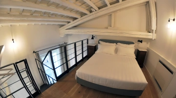 Le camere, modernamente arredate, sono tutte dotate di Wi-Fi, climatizzazione, minibar (rifornito su richiesta), Smart TV, cassaforte e bagno privato con box doccia e phon. Alcune affacciano sul cortile interno, altre sul fiume altre ancora hanno vista sul centro storico. Presente anche una suite con soppalco in grado di ospitare fino a 4 persone.