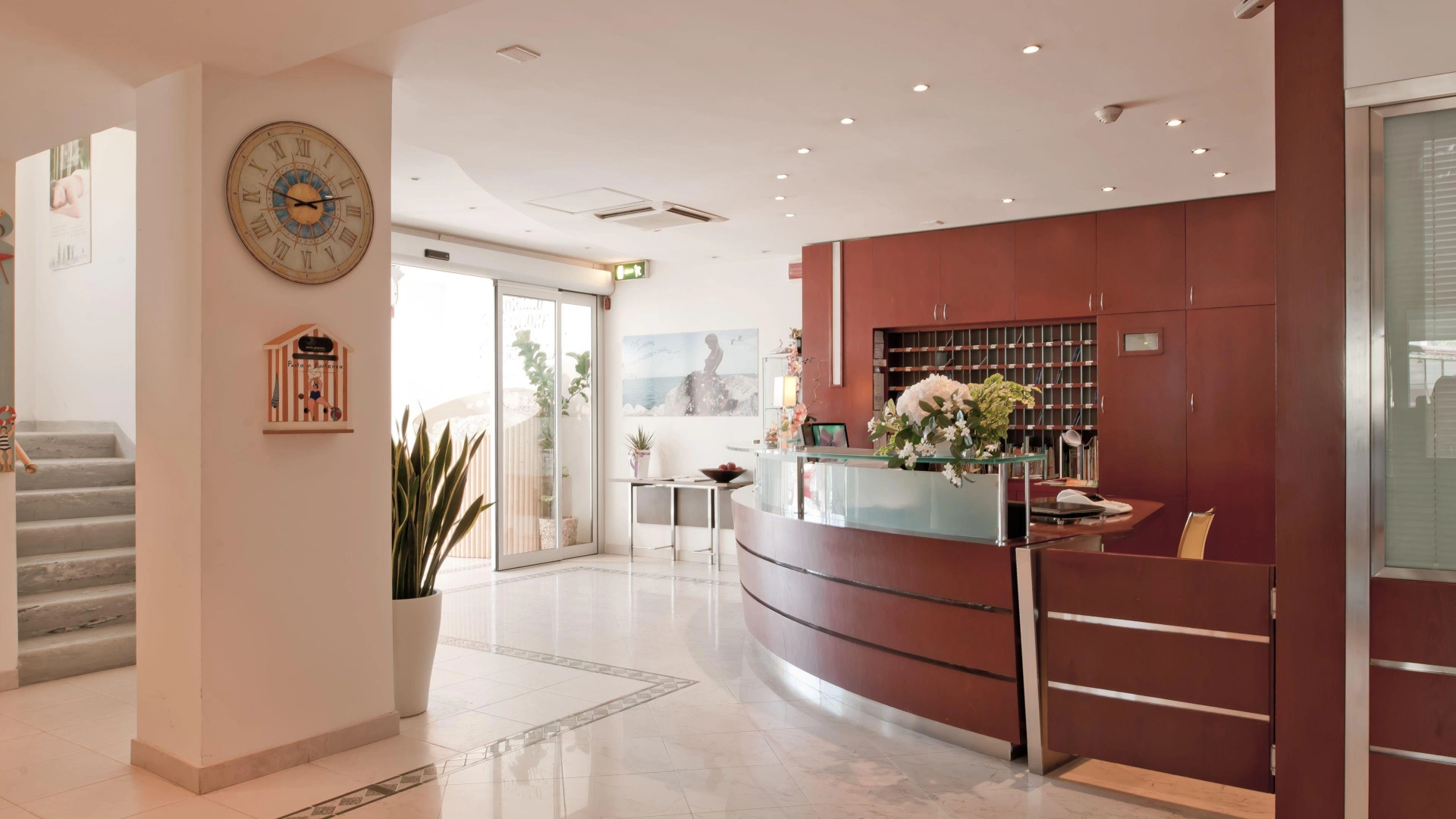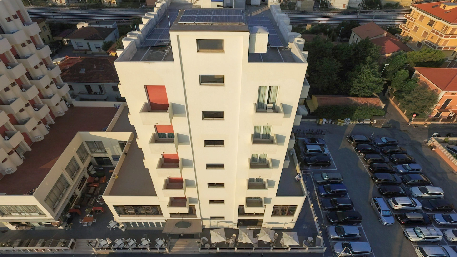 La struttura mette a disposizione un parcheggio privato videosorvegliato a pagamento con torretta di ricarica per auto elettriche. Tra i comfort disponibili spiccano la spiaggia privata, la terrazza arredata e il servizio navetta gratuito per la stazione.