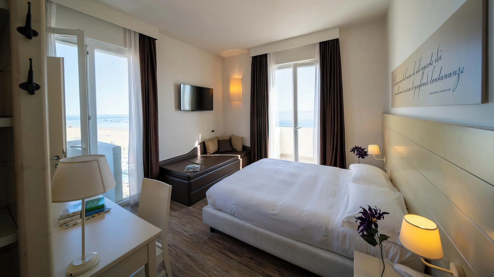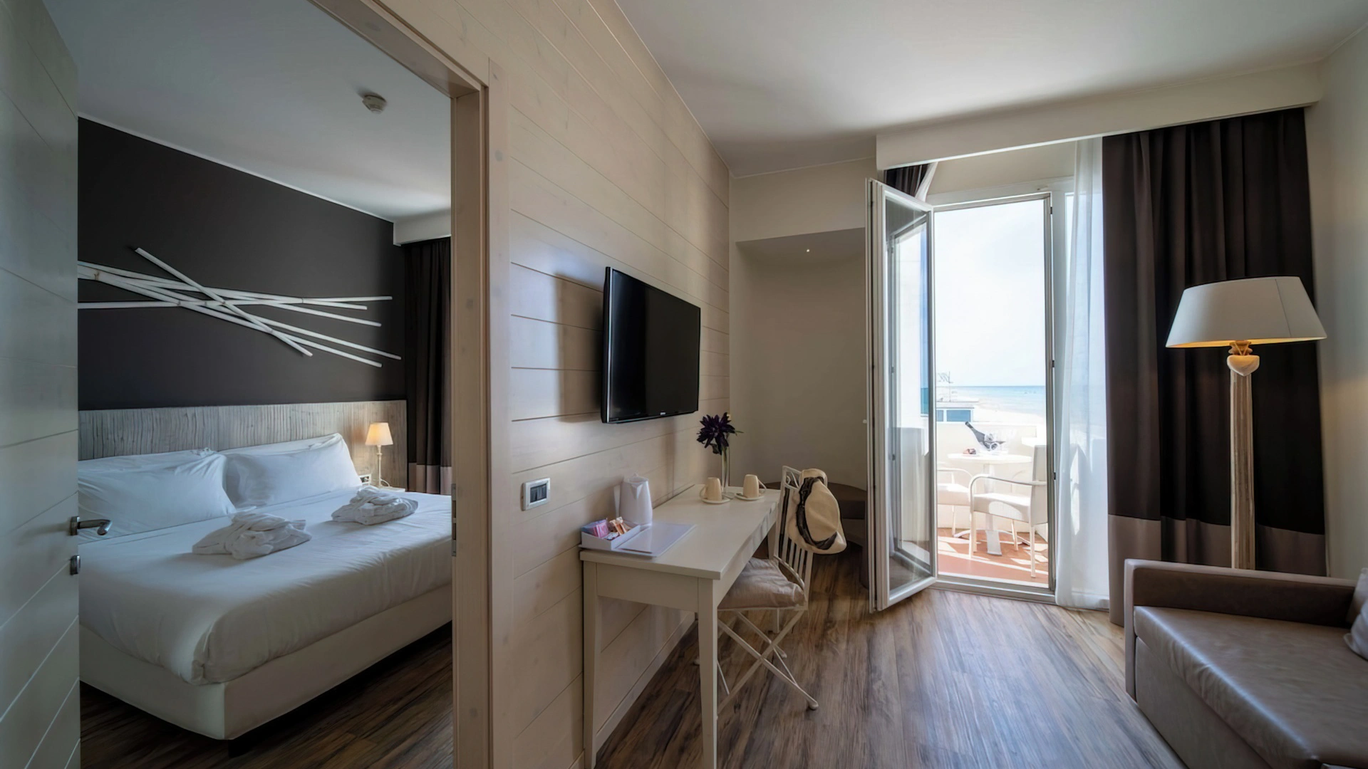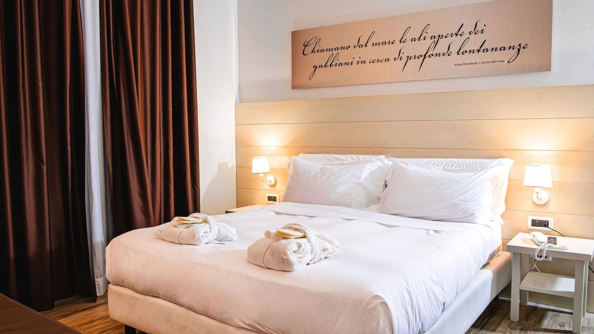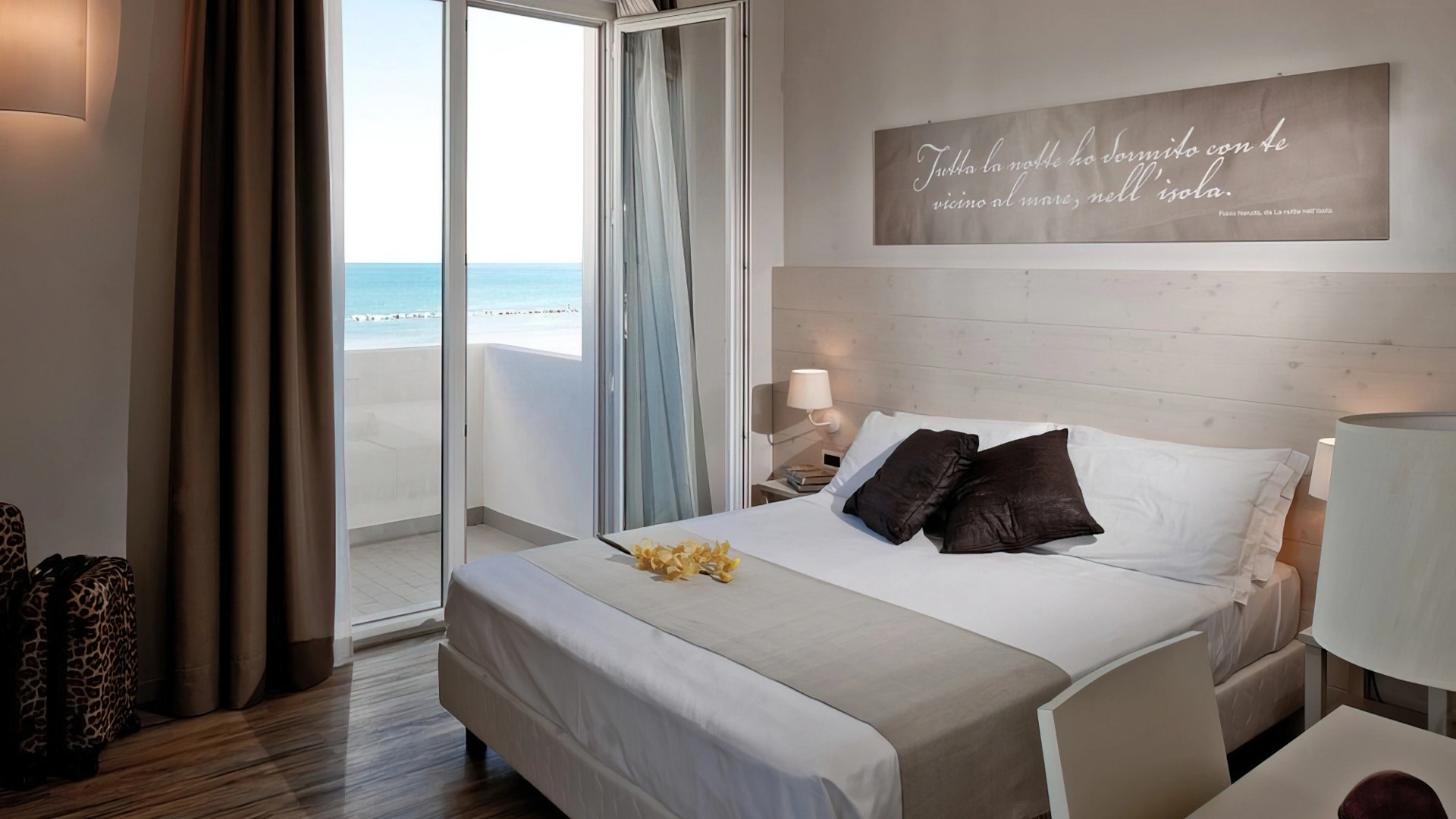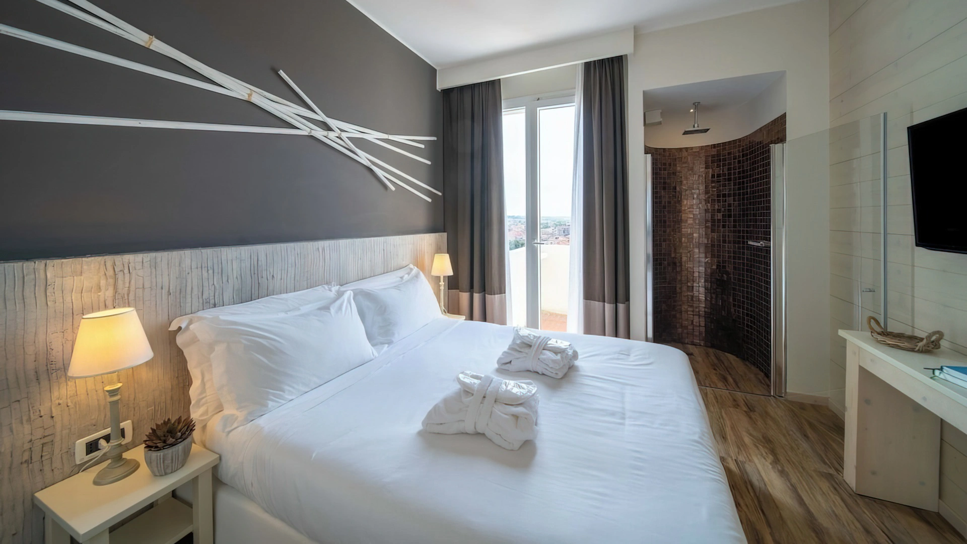 Le camere, dal design contemporaneo, sono ionizzate con specifico macchinario a intervalli regolari, per garantire protezione da insetti, germi e acari. Tutte le stanze godono di balcone, aria condizionata, minibar, cassaforte, Sky TV, connessione Wi-Fi, bagno privato con doccia, phon e kit di cortesia.