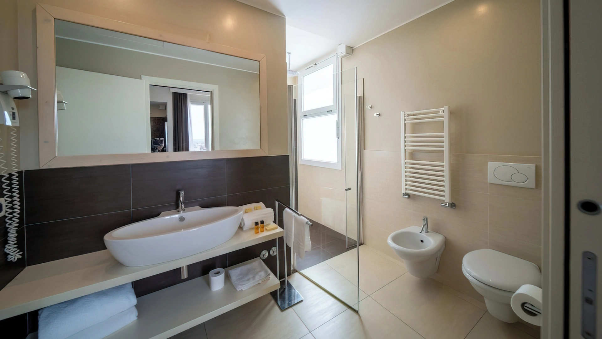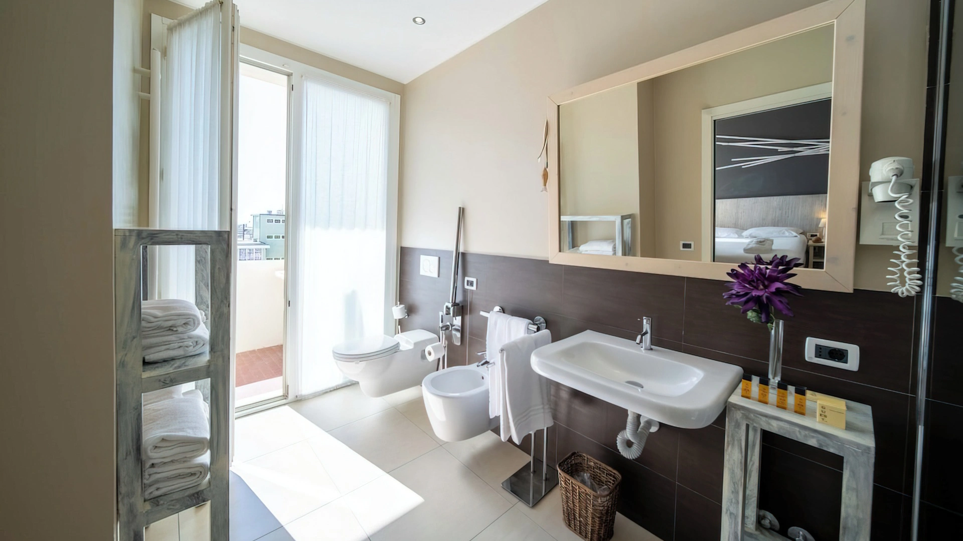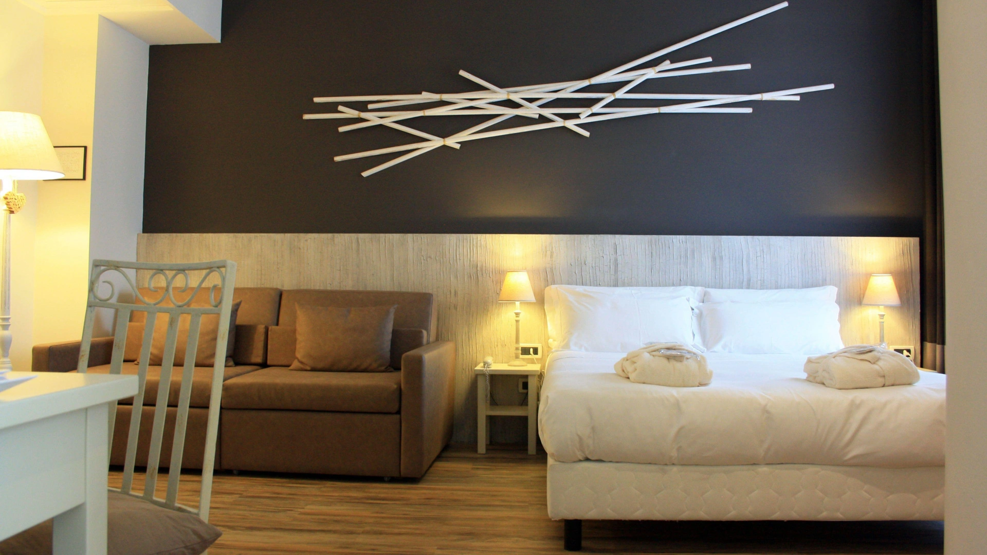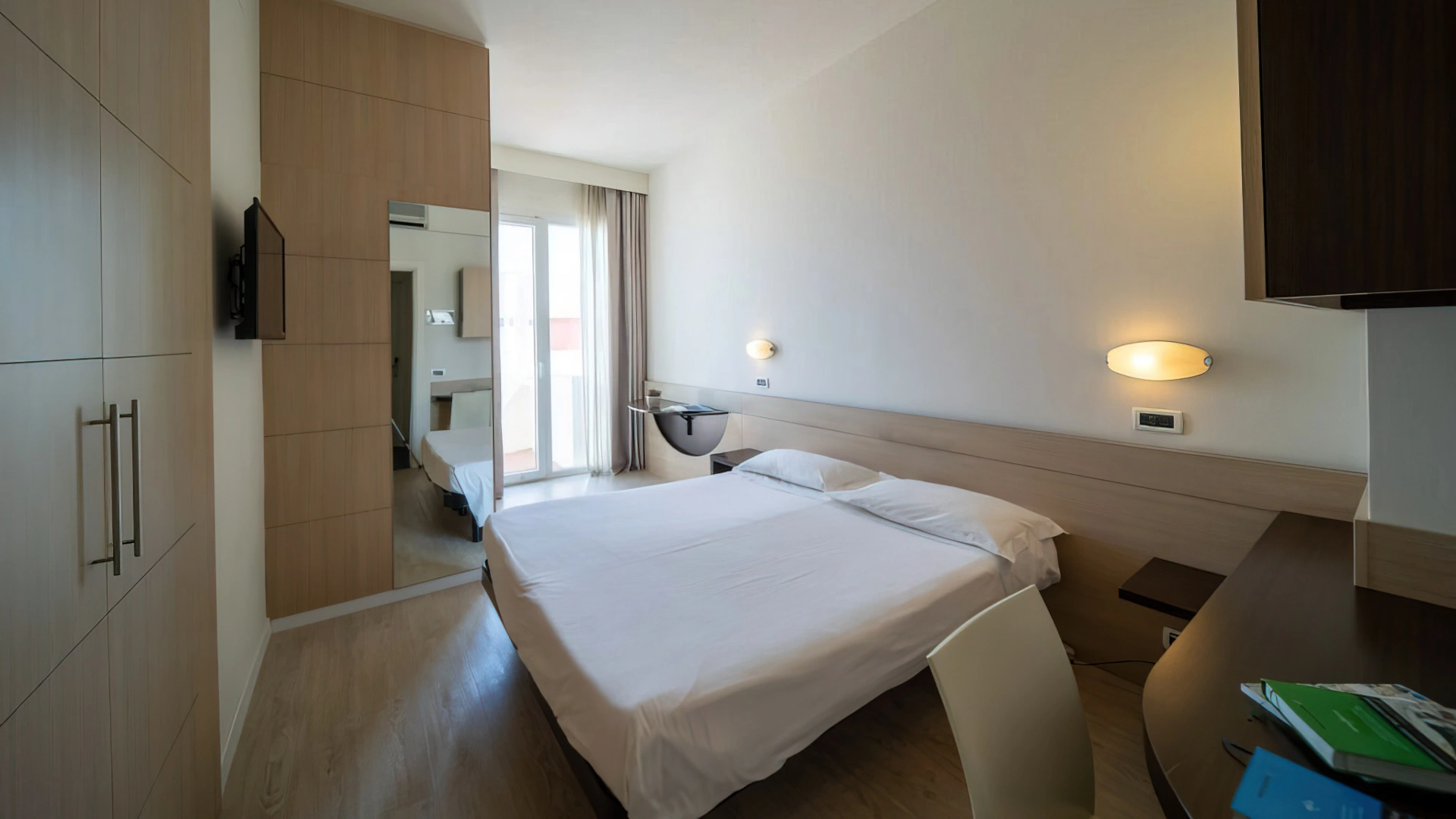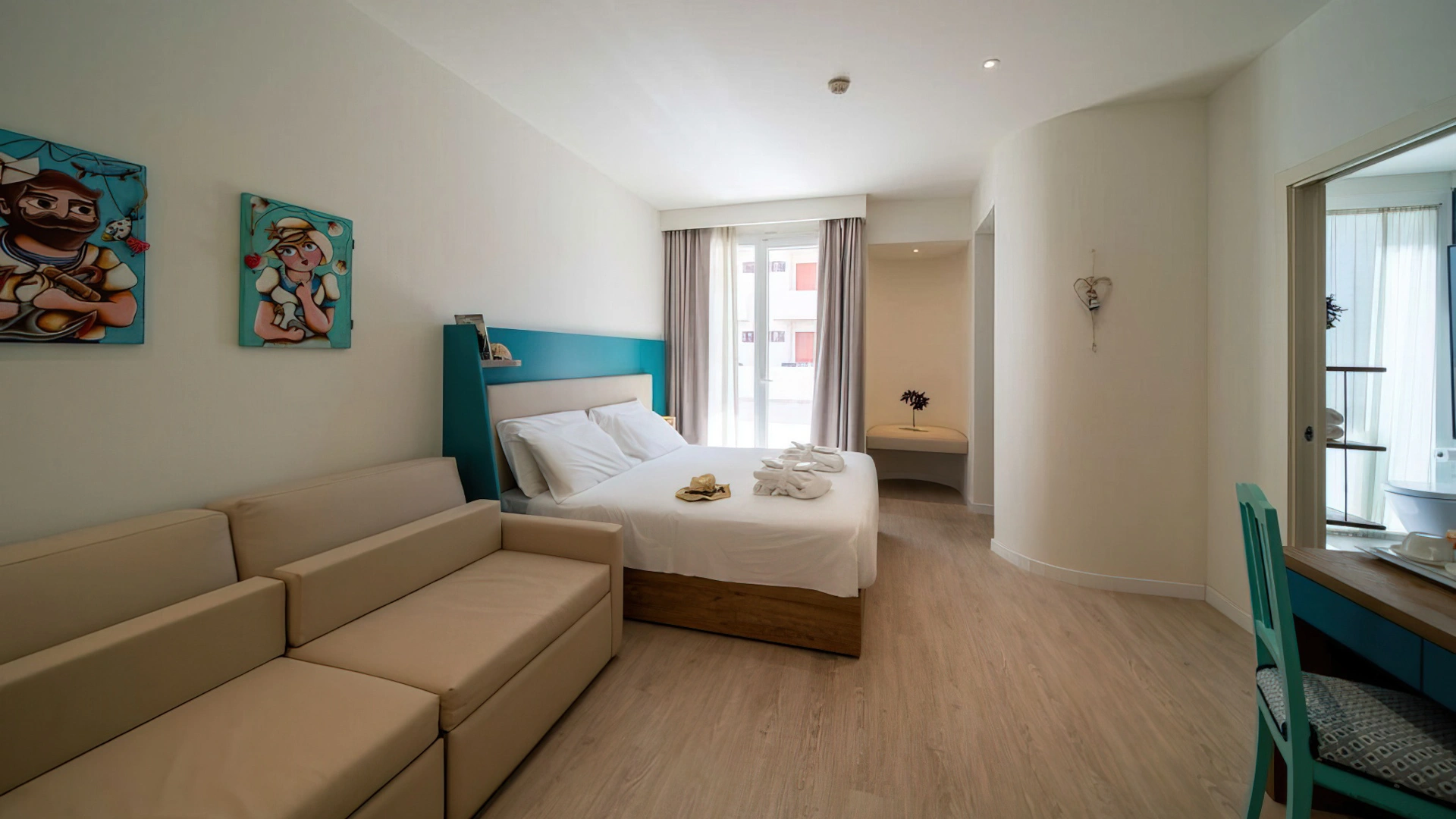 Le camere, dal design contemporaneo, sono ionizzate con specifico macchinario a intervalli regolari, per garantire protezione da insetti, germi e acari. Tutte le stanze godono di balcone, aria condizionata, minibar, cassaforte, Sky TV, connessione Wi-Fi, bagno privato con doccia, phon e kit di cortesia.