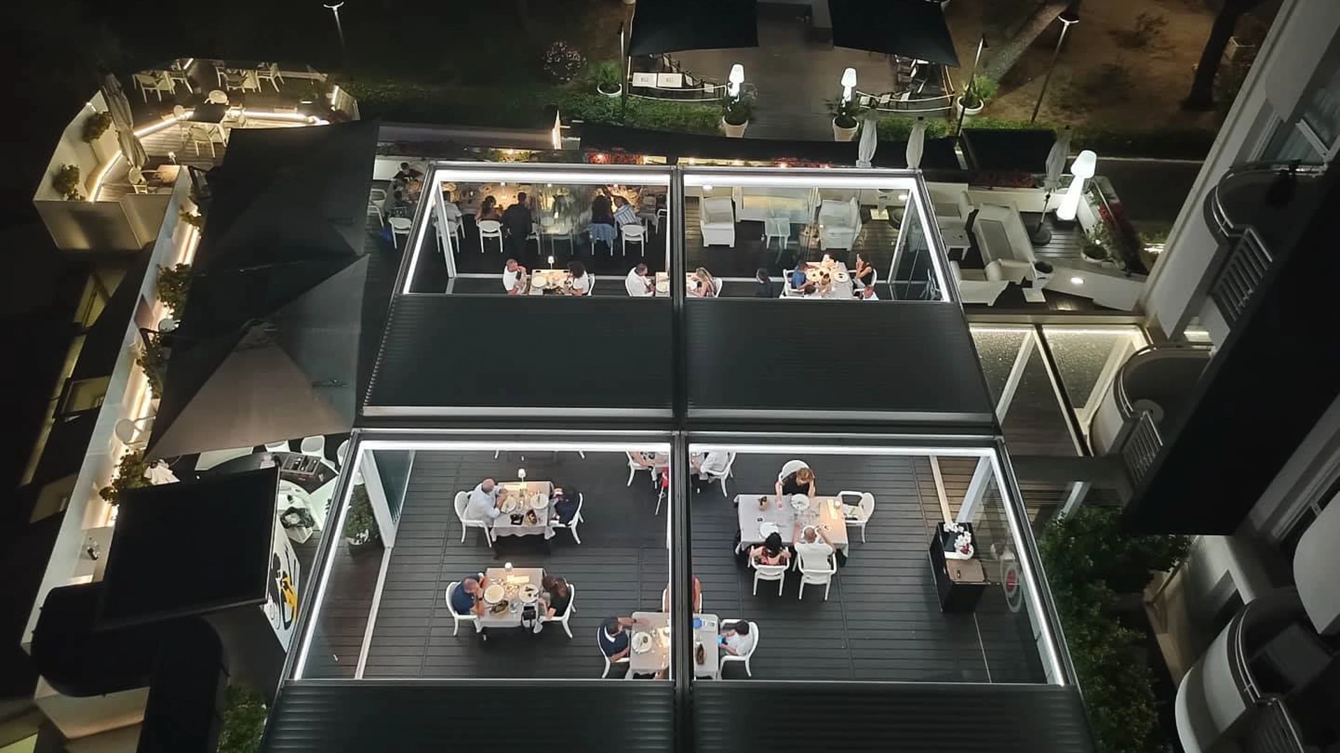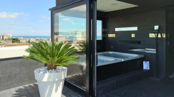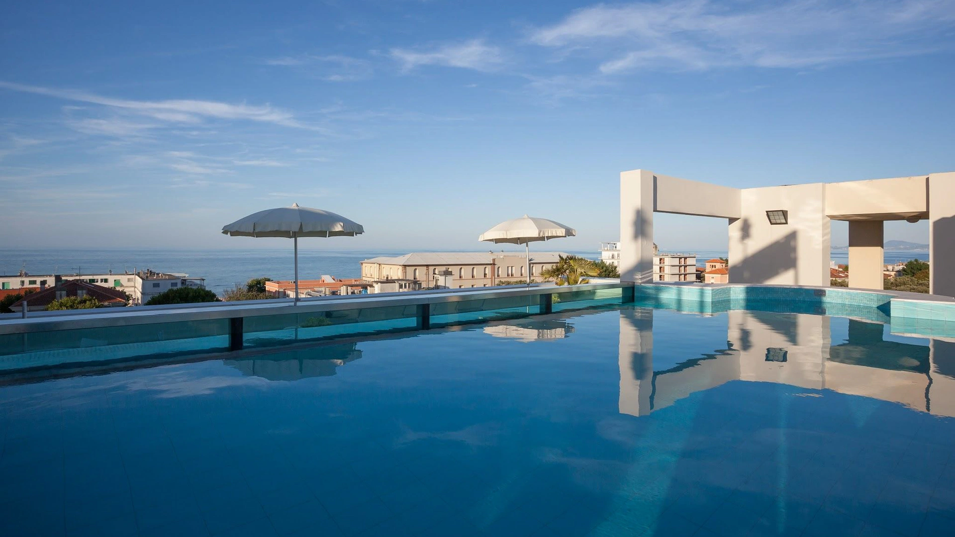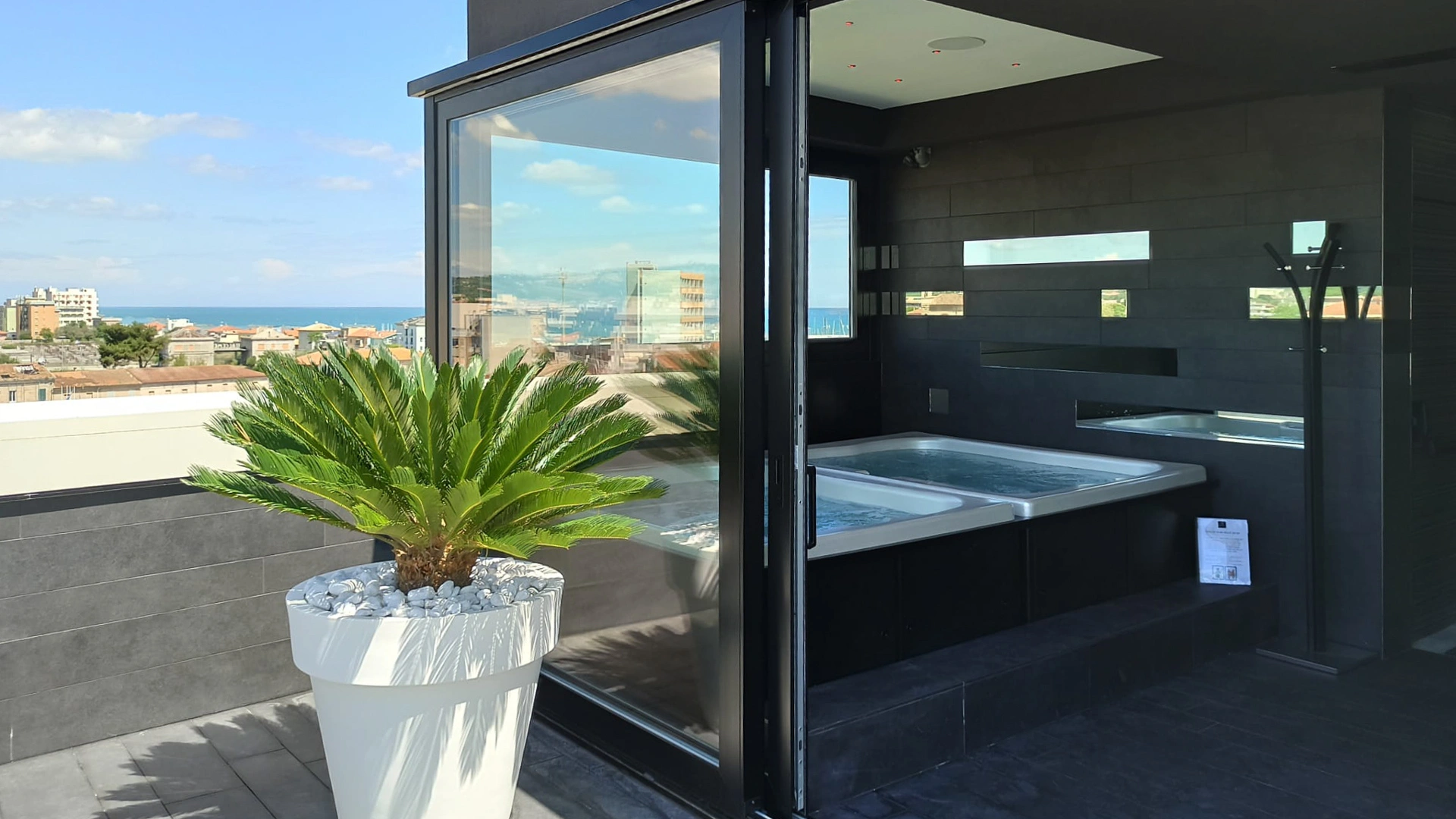 Ospitata al quinto piano dell'edificio e circondata da lettini ed arredi moderni, la piscina panoramica ad acquario è in posizione adiacente allo Sky Wellness. Viene riempita con acqua salata ed è ad apertura stagionale. Sono presenti inoltre vasche idromassaggio riscaldate. Su richiesta vengono organizzati aperitivi ed eventi privati a bordo piscina.