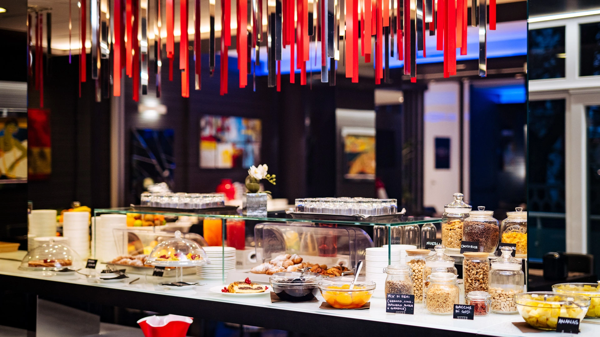 La colazione viene servita a buffet nella sala ristorante e offre prodotti dolci, salati, biologici e senza glutine. Il Ristorante Mooka propone un menù alla carta con piatti fusion sia di terra sia di mare, con particolare attenzione ai bisogni di clienti soggetti ad intolleranze. Nel corso della bella stagione è possibile consumare i pasti sulla Terrazza Morandi, situata al primo piano.