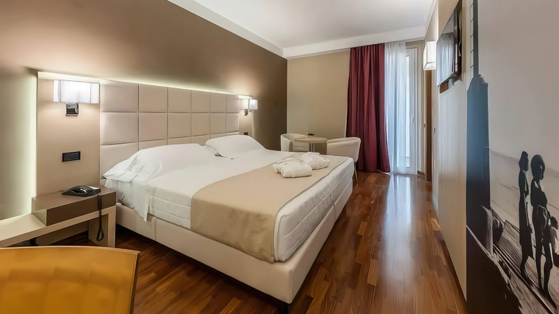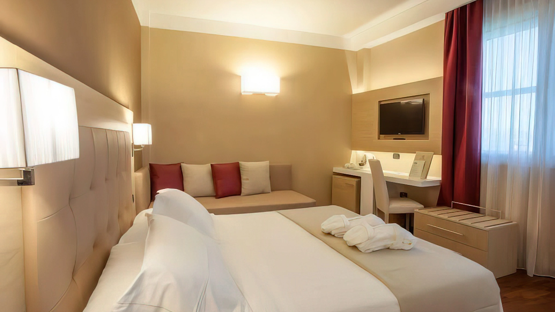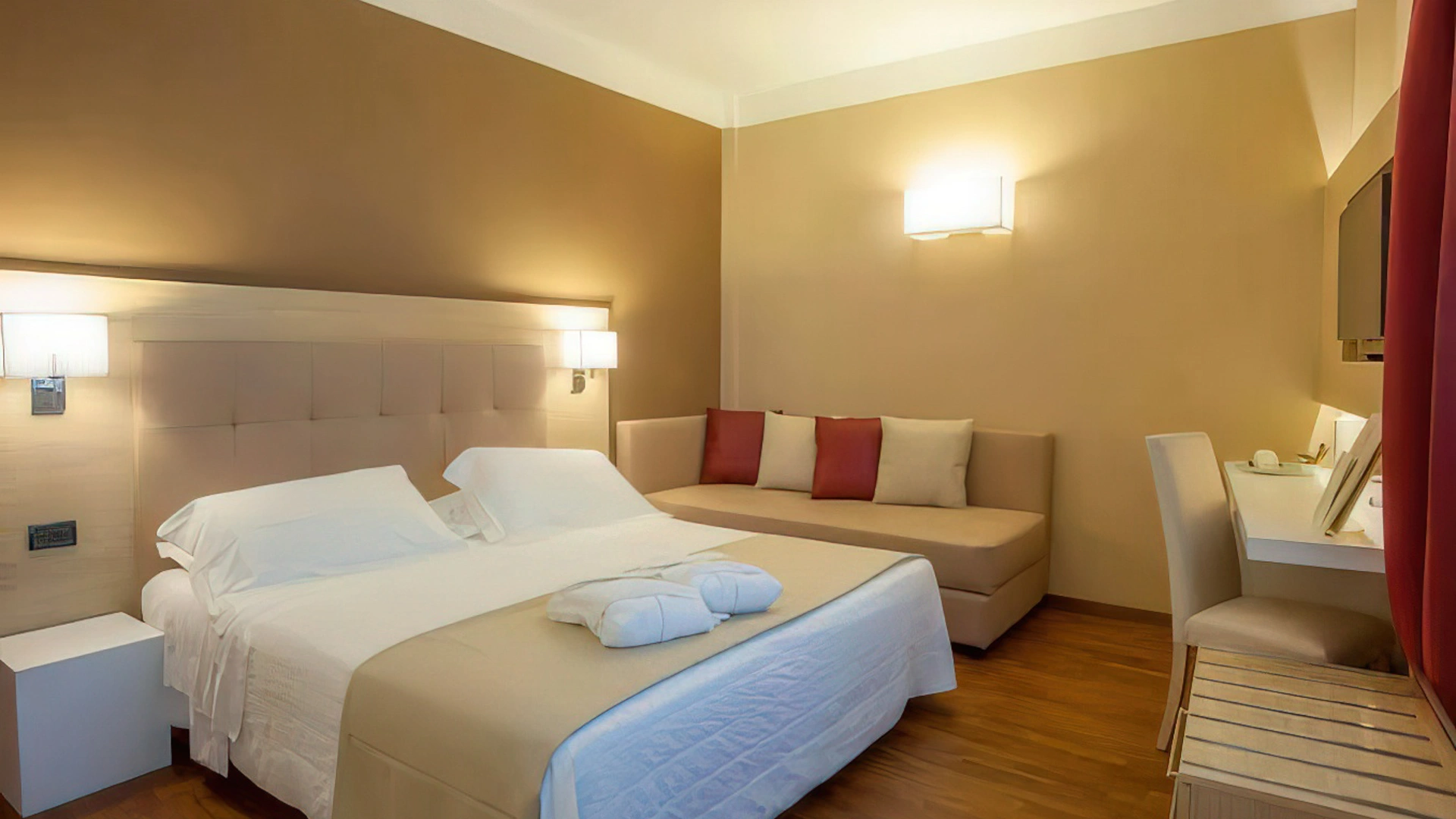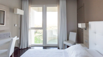 Tutte le camere, arredate in stile contemporaneo, sono dotate di aria condizionata, TV satellitare con canali Sky, light minibar, bollitore, connessione Wi-Fi gratuita, set di cortesia e bagno privato con asciugacapelli e box doccia. Alcune sistemazioni offrono anche una vista panoramica, una zona living e un balconcino. È inoltre disponibile un appartamento composto da due camere da letto, zona giorno e servizi privati.