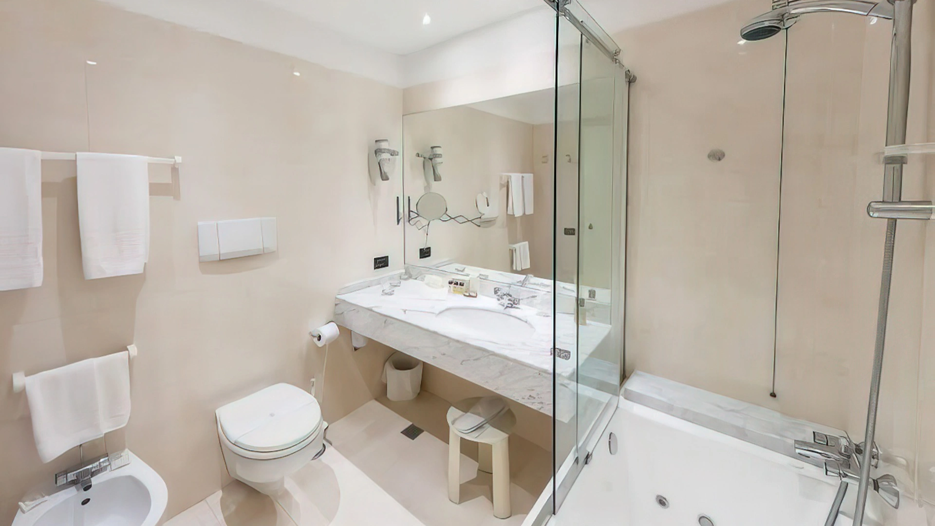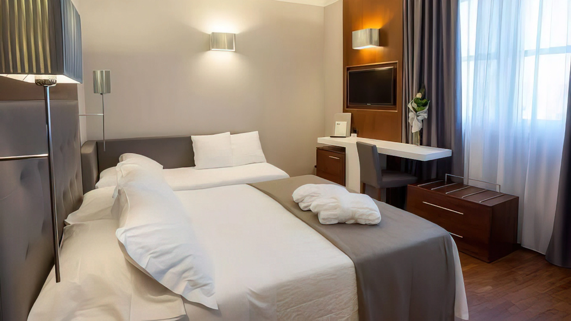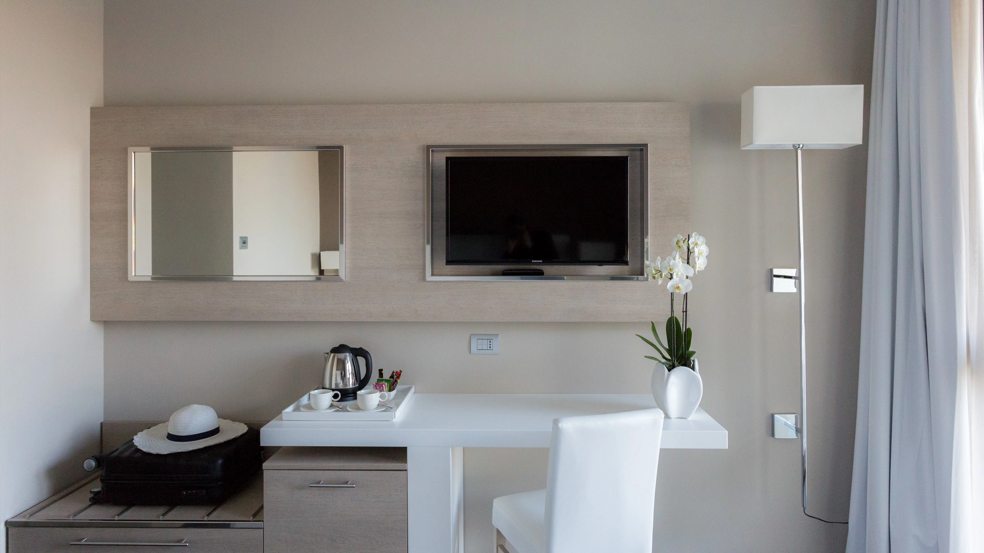 Tutte le camere, arredate in stile contemporaneo, sono dotate di aria condizionata, TV satellitare con canali Sky, light minibar, bollitore, connessione Wi-Fi gratuita, set di cortesia e bagno privato con asciugacapelli e box doccia. Alcune sistemazioni offrono anche una vista panoramica, una zona living e un balconcino. È inoltre disponibile un appartamento composto da due camere da letto, zona giorno e servizi privati.