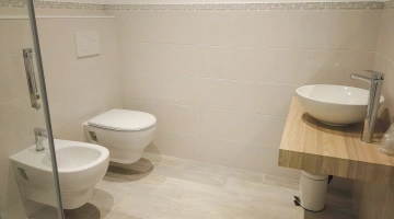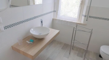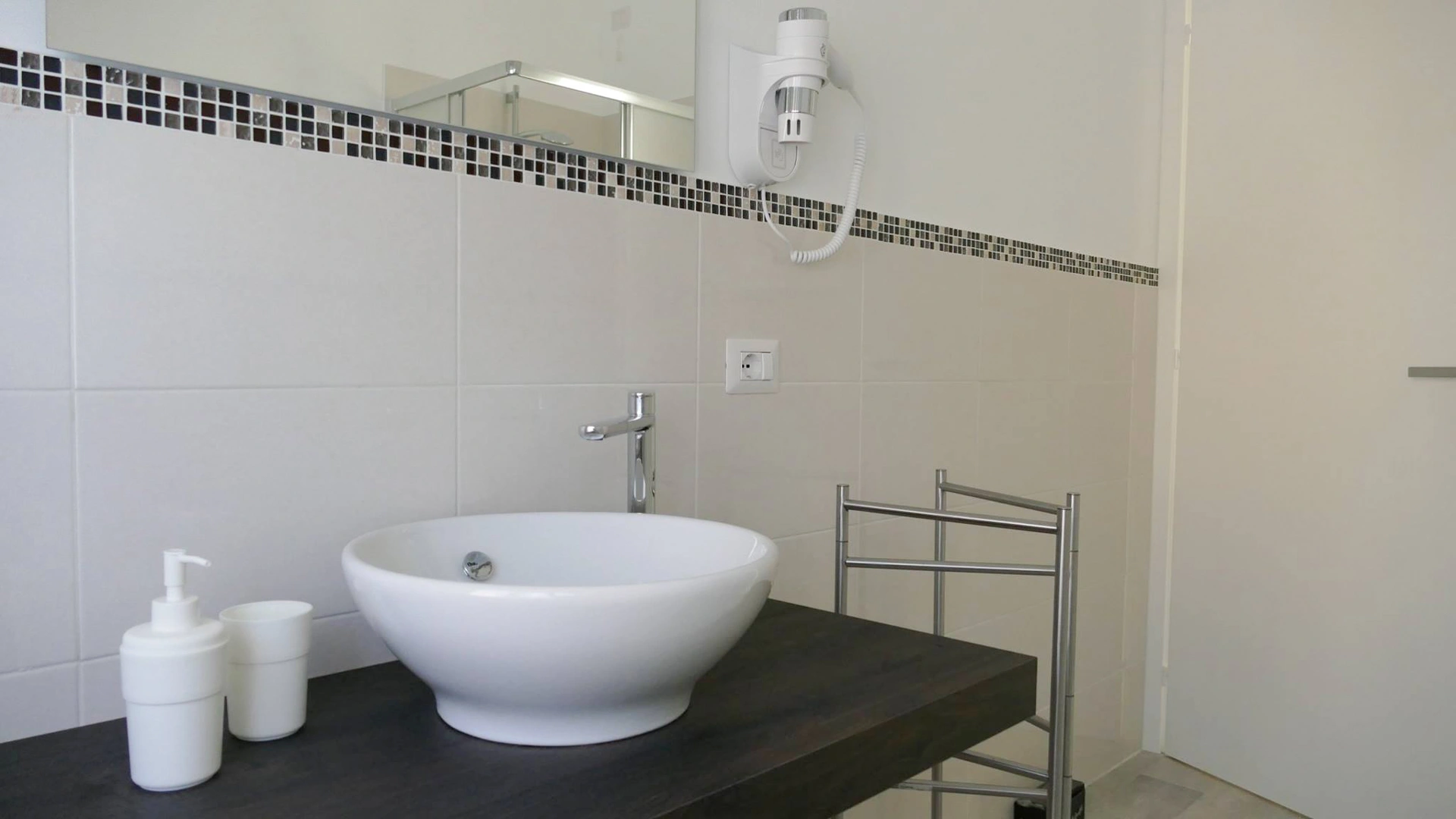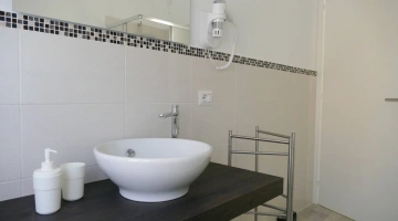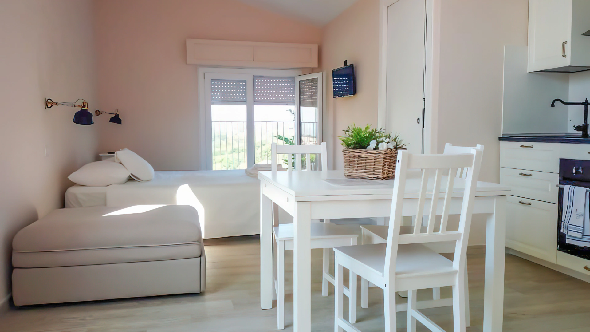 La struttura dispone anche di un monolocale mansardato con cucina/soggiorno, letto matrimoniale, divano letto, bagno privato e terrazza panoramica vista mare.