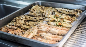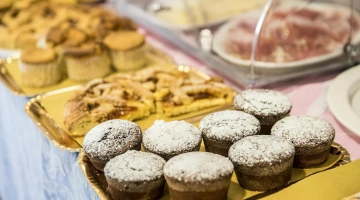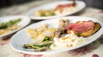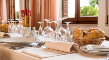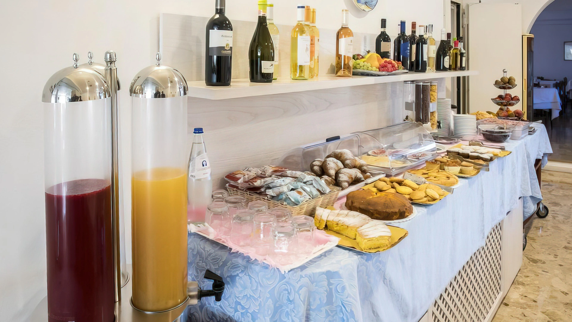 La colazione è inclusa e propone un'ampia varietà di prodotti dolci e salati. Torte e crostate caserecce sono accompagnate da frutta fresca di stagione, con possibilità di richiedere anche menù particolari. Nella struttura è presente un ristorante a conduzione familiare che, per pranzo e cena, offre un menù di pesce ricco di piatti della tradizione marchigiana.
