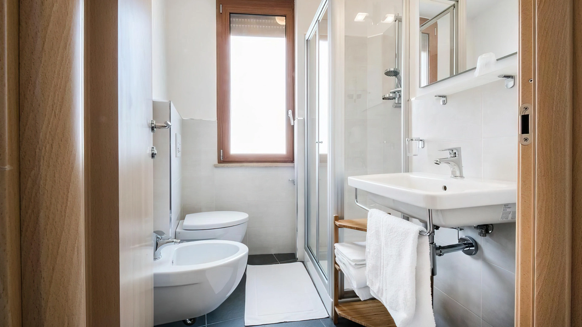 Arredate con semplicità, le camere sono tutte dotate di TV a schermo piatto, aria condizionata, minibar, telefono e connessione Wi-Fi. Nel bagno privato con doccia sono disponibili asciugacapelli e set di cortesia. Le camere più grandi, con letto matrimoniale, dispongo anche di letto singolo o a castello e sono ideali per chi viaggia con la famiglia.