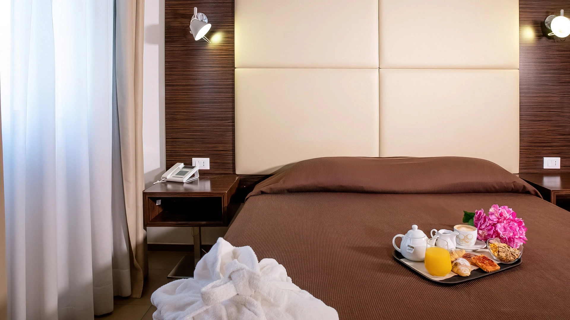 Le sistemazioni, caratterizzate da arredi in stile moderno, sono tutte fornite di aria condizionata, connessione Wi-Fi, TV con canali pay-tv, minibar, cassaforte, telefono e bagno privato con doccia o vasca, phon e set di cortesia. L'offerta si suddivide in camere standard, camere bilocali e ampie Junior Suite.